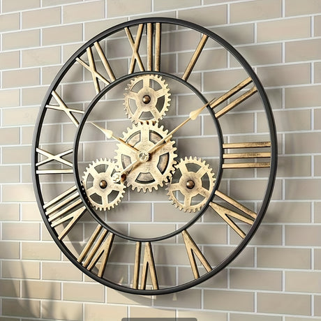 Decorative Black Golden Large Wall Clock - Battery Powered - Suitable for Living Room Decoration