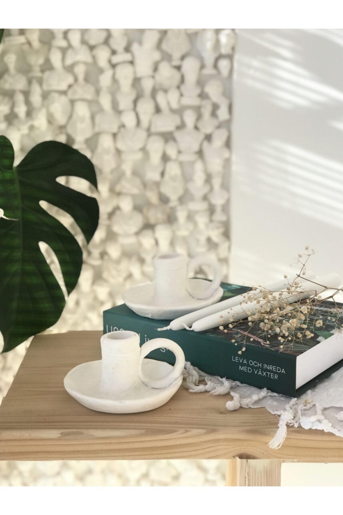 Candelera blanca hecha a mano de 2 paquetes con mango