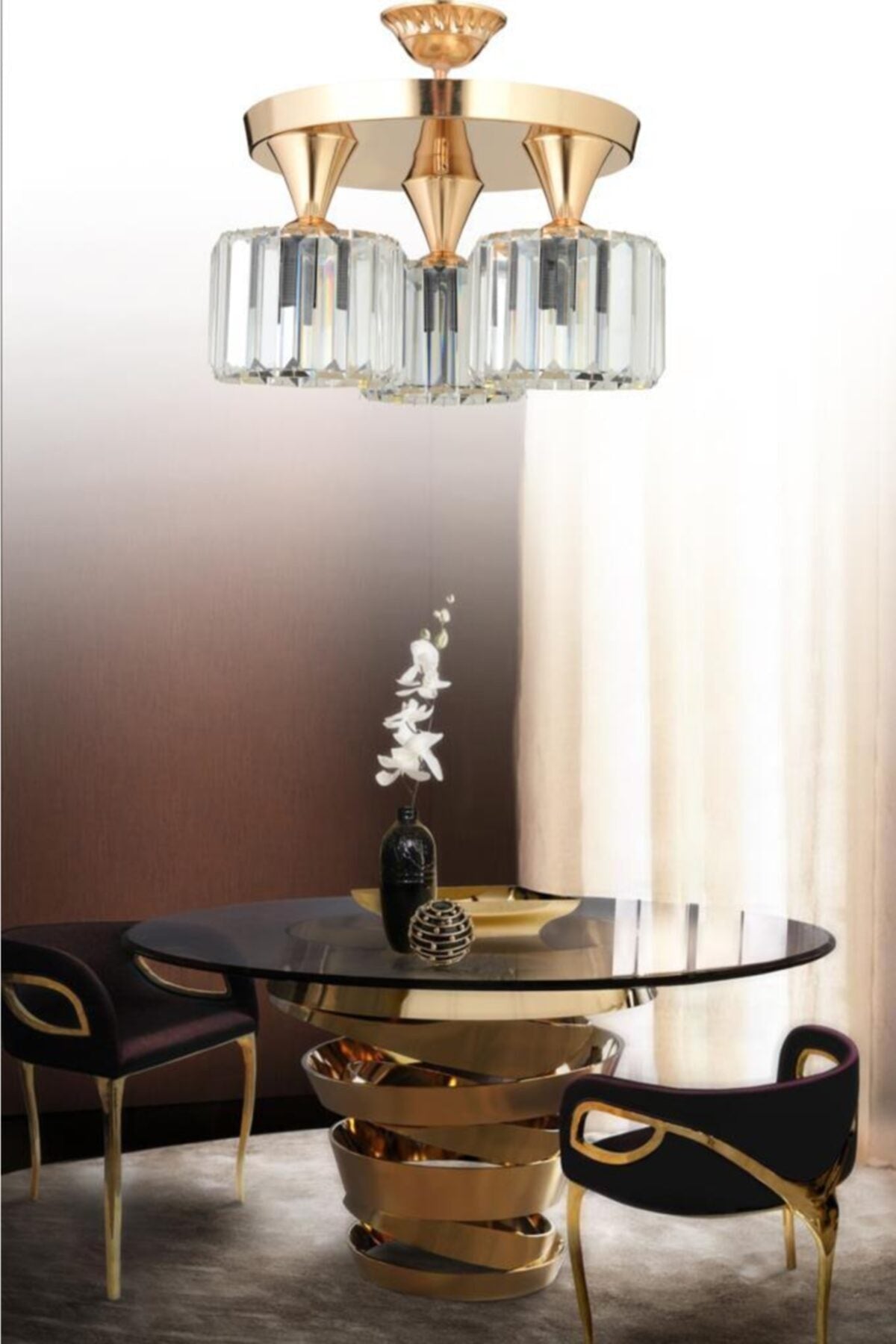 Ahu 3-Piece Gold Plafonier Y-10 Crystal Stone Chandelier