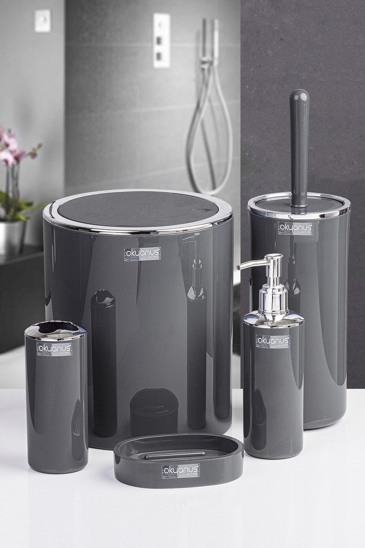 Anthracite Round Chrome Bathroom Set of 5 - Swordslife