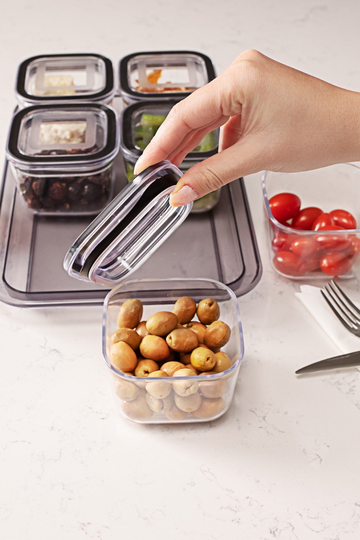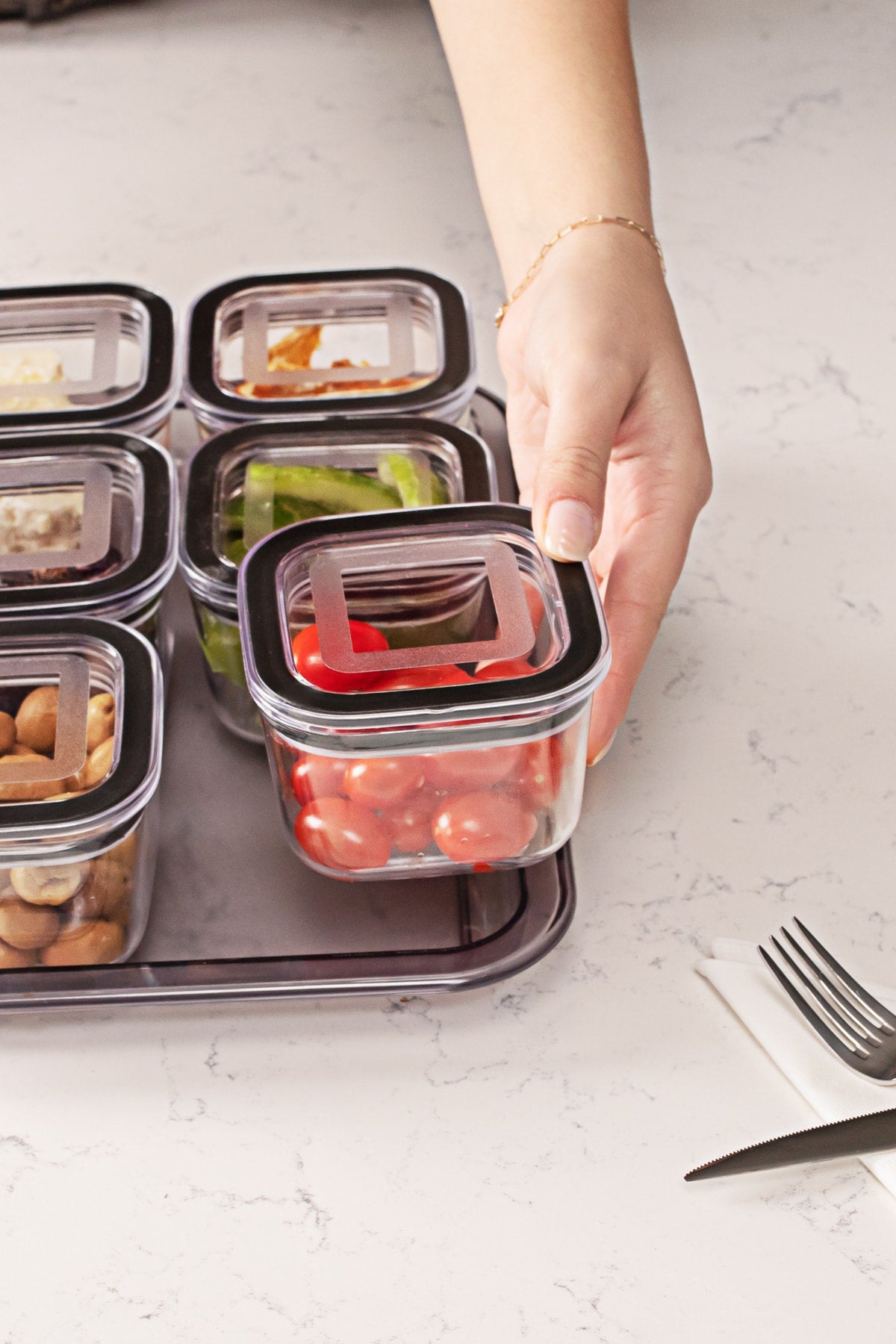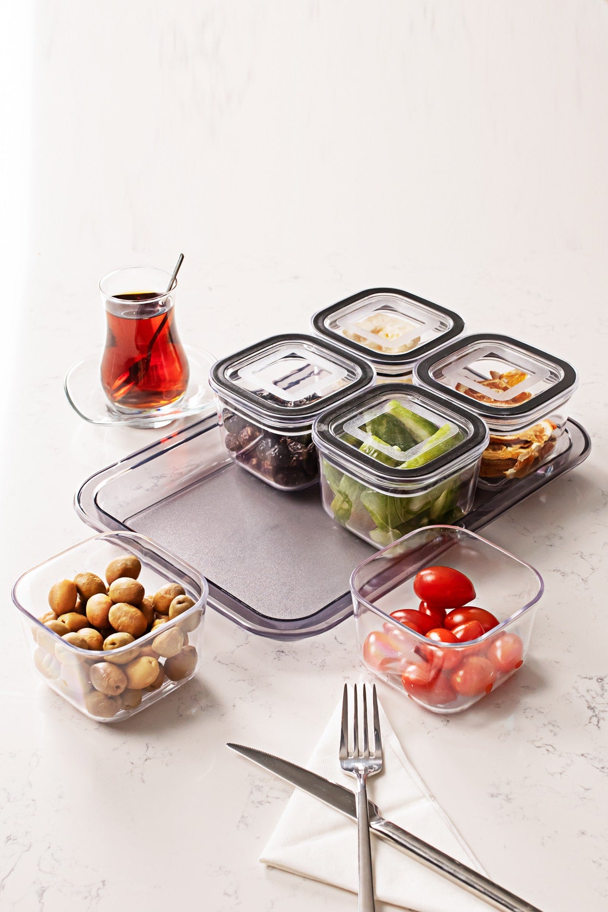 Azza Mini 13 Piece 6 Compartment Storage Snack Breakfast Set With Vacuum Lid Black