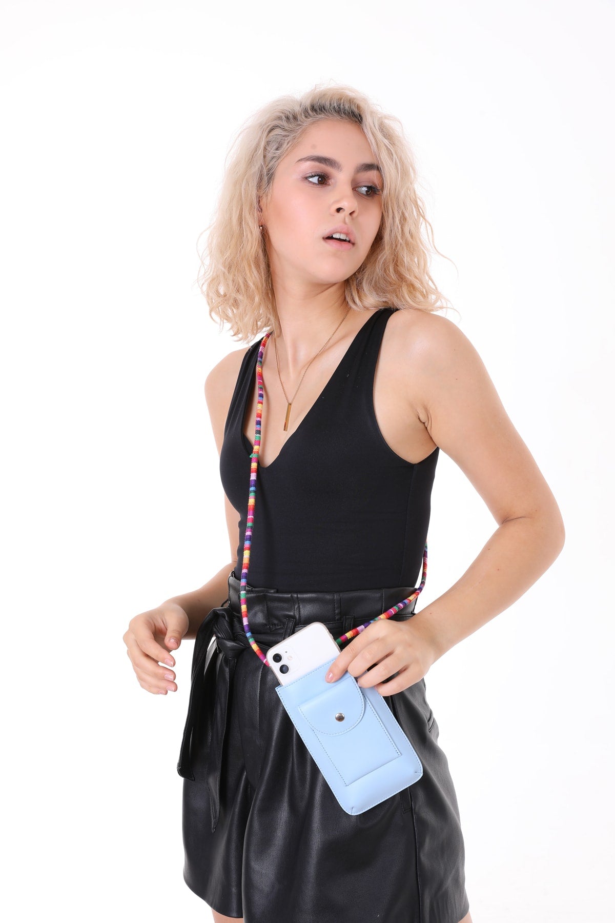 Blue Color Colorful Shoulder Strap Cell Phone Bag Card Holder