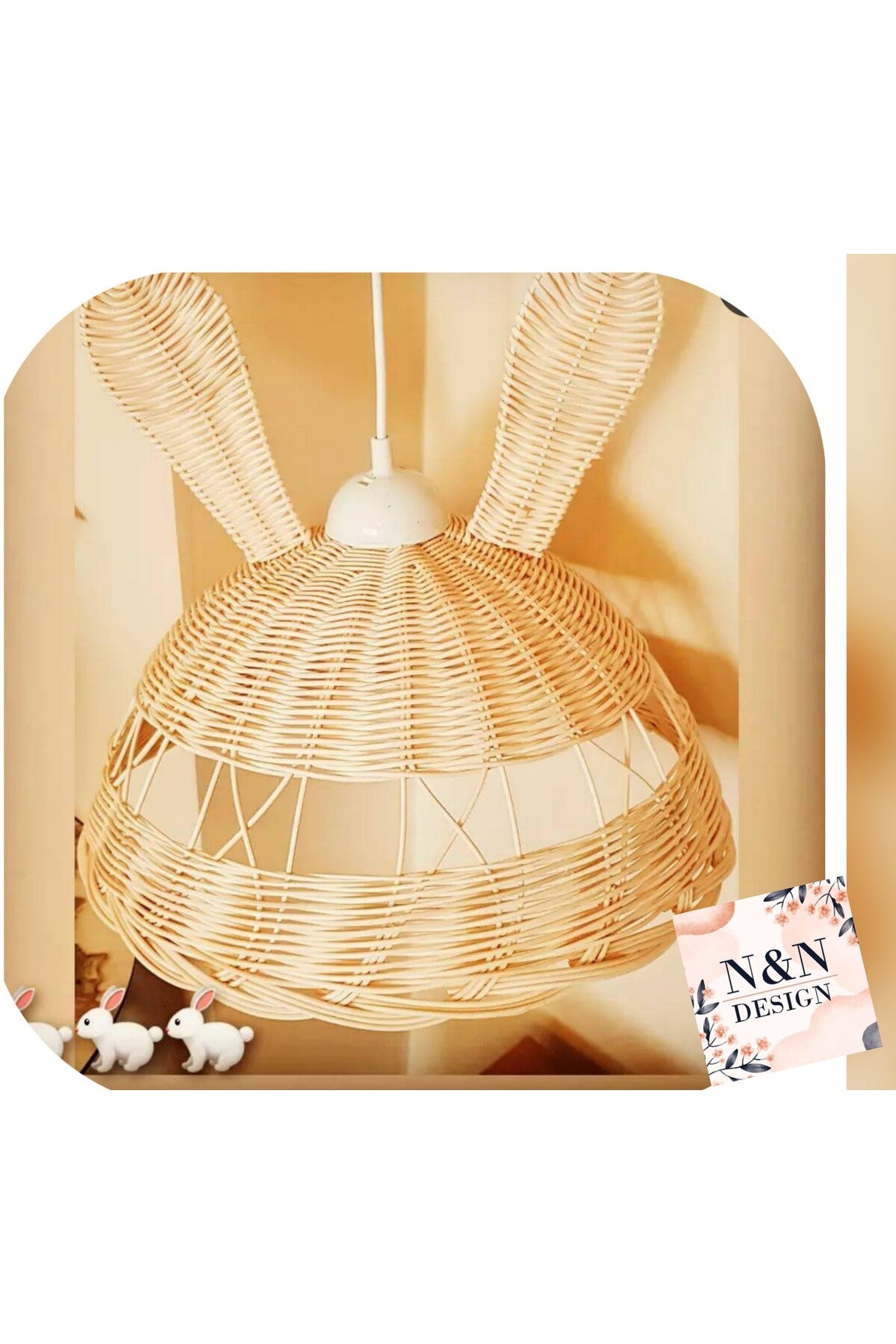 Children'S Room Eared Chandelier Rattan Bamboo Wicker Chandelier
