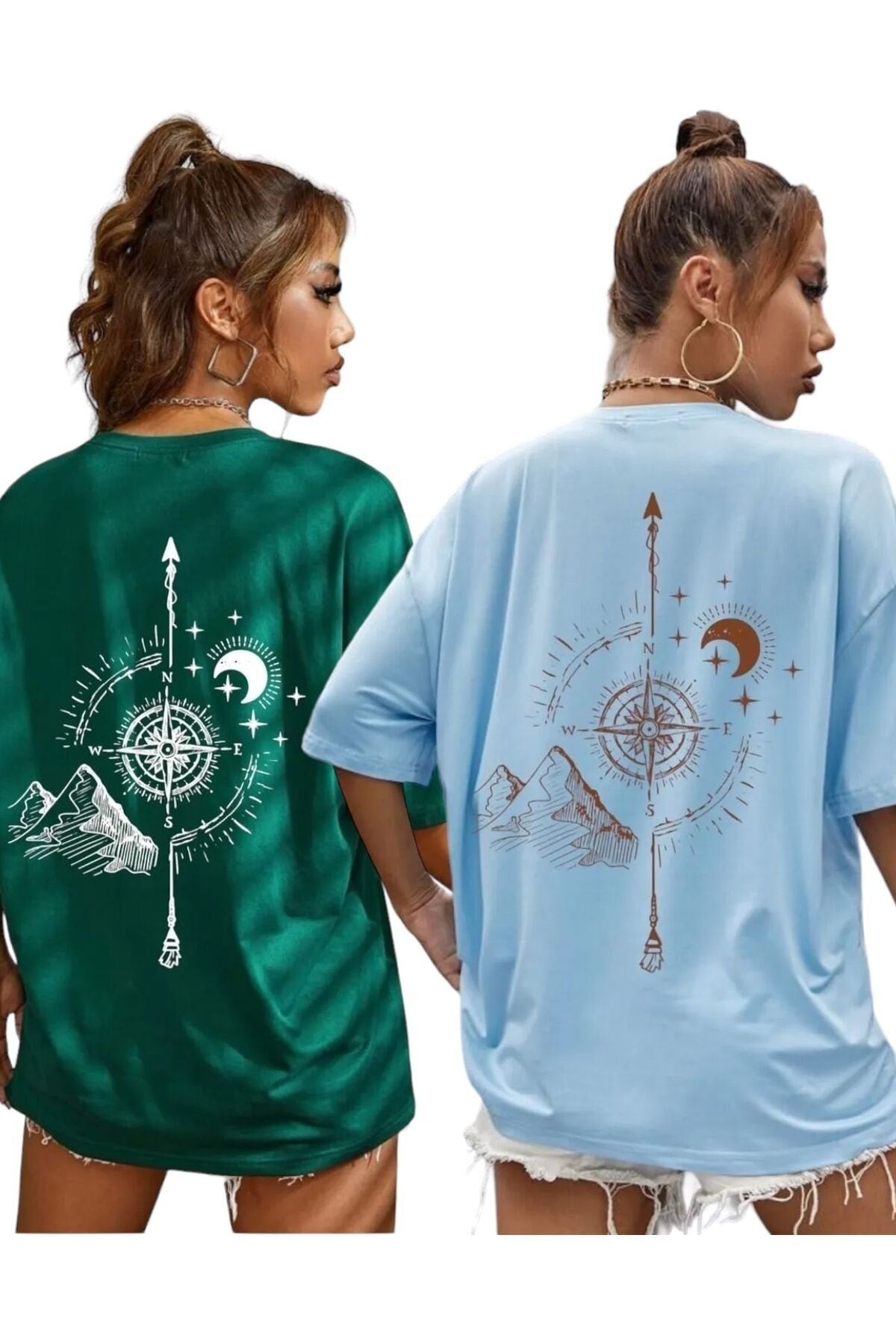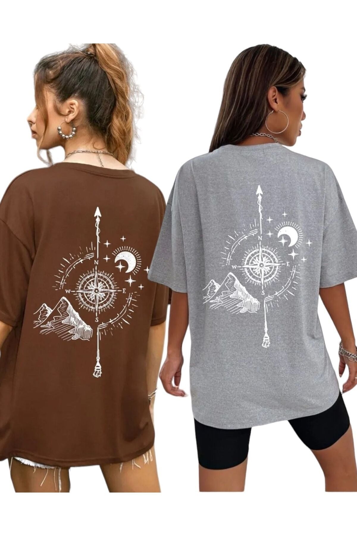 Compass Printed Oversize Unisex T-Shirt 2 Pack (2 Pcs)