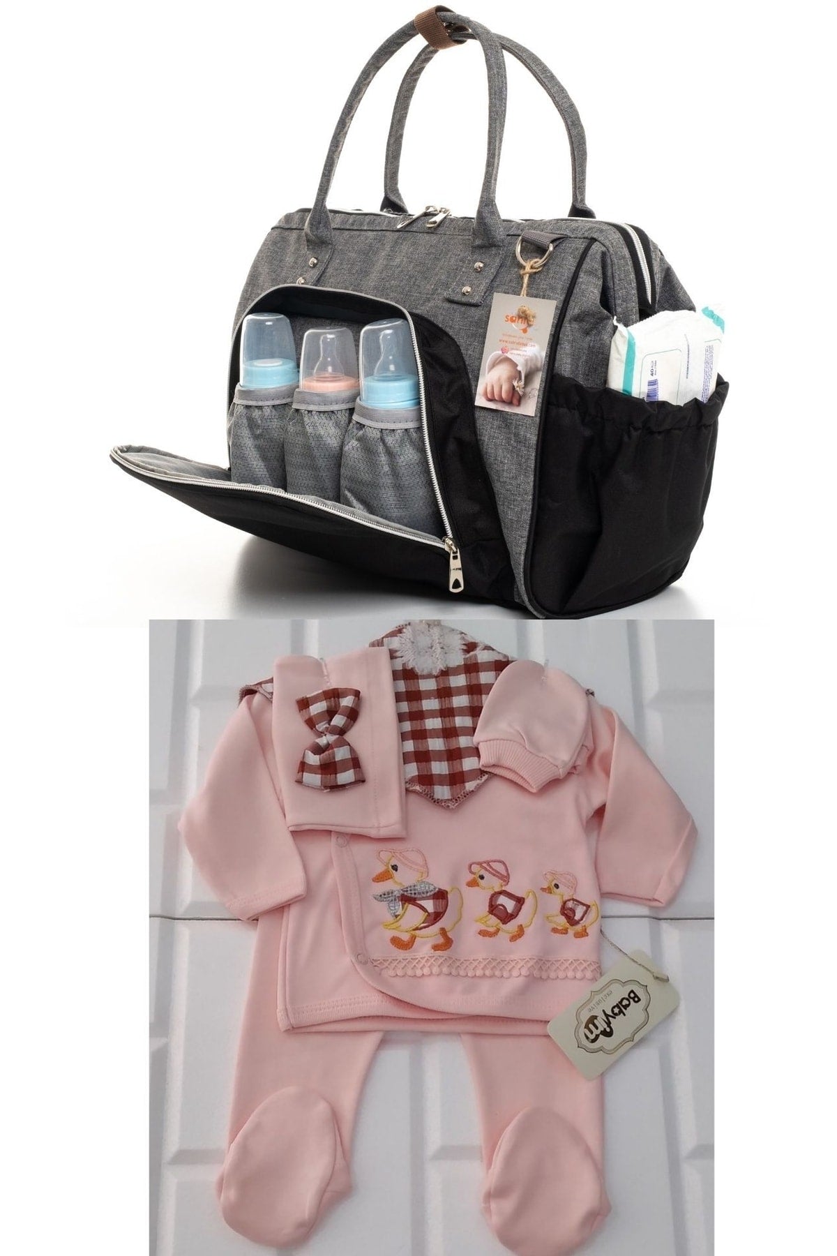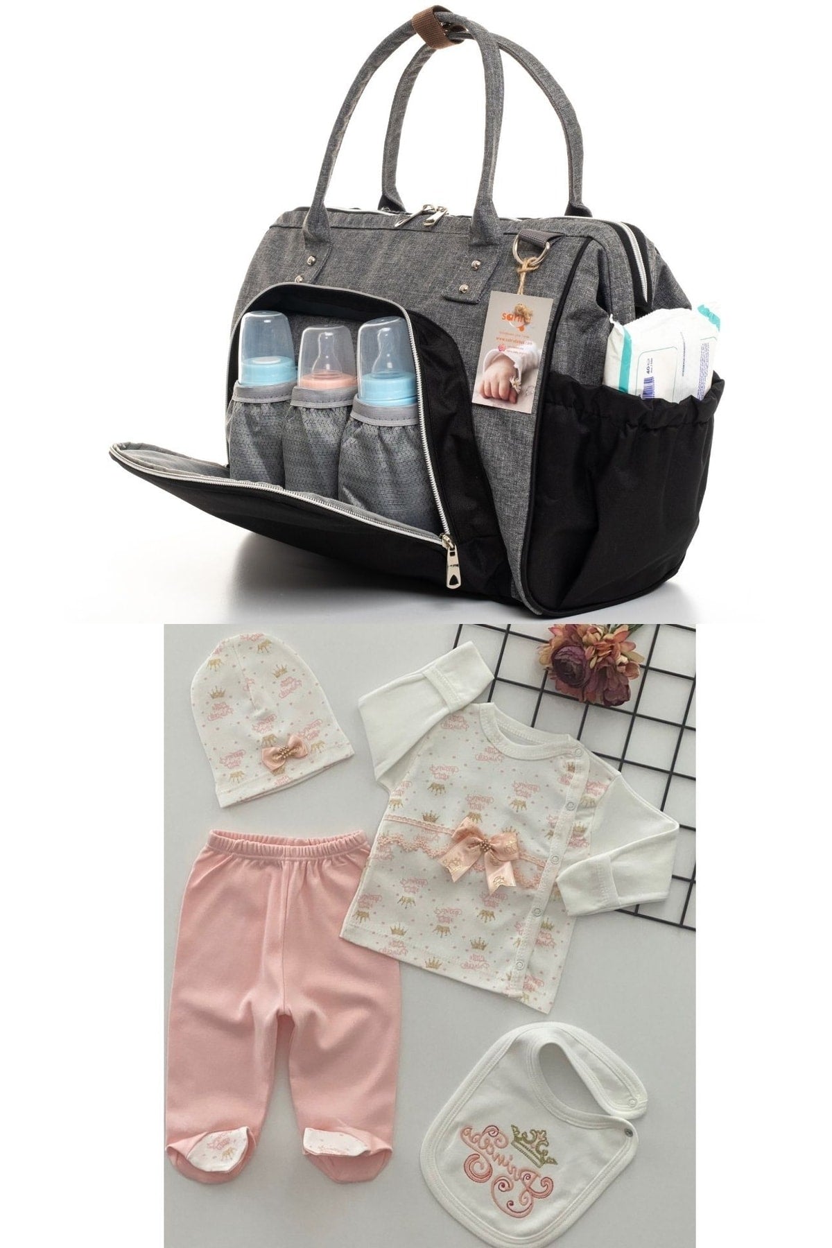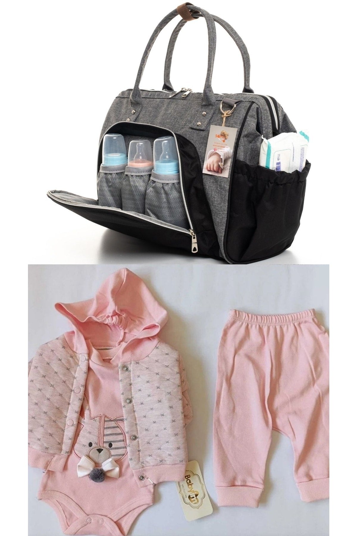 Baby care shoulder bag the feature of being used as a handbag, crossbody bag with straps and a normal flat shoulder bag, water-proof and stain-proof quality fabric made from first-class materials, the fabrics used in all models of baby care shoulder and backpack bags have breaking strength, tear strength, stitching. it is processed in our workshops after undergoing strength, pilling (pilling) and air permeability tests. our product is guaranteed for 2 years. liquid storage area with a thermal compartment with a volume of up to 3 feeding bottles, and a specially designed wet wipes section on the side of your bag, you can easily store your wet wipes and take them out whenever you want. the hanging mother baby care bag is designed for use as a mother baby bag and is a product that you can use comfortably with many different combinations. there is a zippered back compartment where you can easily store your personal belongings such as wallets and phones, and a section that you can fix on your luggage during your travels. top double zipper feature that can be opened in both directions, large interior volume that you can use comfortably with fixed quality metals, quality inner lining and interior of the bag with an interior compartment where you can put your different items, dimensions: width: 37 cm, length: 31 cm, width: 16 cm 100% cotton hospital exit seti is suitable for 0-3 months use. it is made of 100% cotton. it does not contain any carcinogenic substances. it is a 100% natural anti-allergic product. it has a comfortable and convenient design. with its soft fabric, it fits your baby's body and allows it to move comfortably. the snaps we use do not contain nickel, so your baby's health is safe. made in turkey. attention! washing instructions: in order to use our products for a longer time, please do not use bleaching detergent. do the washing, drying and ironing operations in reverse order. Improved version for clearer understanding and better search visibility. Suitable for users seeking detailed and reliable product information.