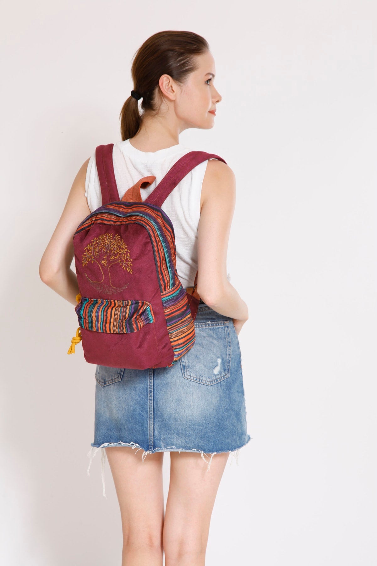 Ethnic Authentic Bohemian Backpack With Tree Of Life Embroidery