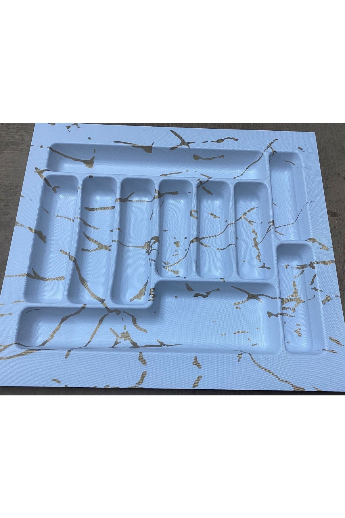Gold Detailed White Drawer Organizer Cutlery, Ladle Holder 55X49 Cm Cuttable Hard Plastic
