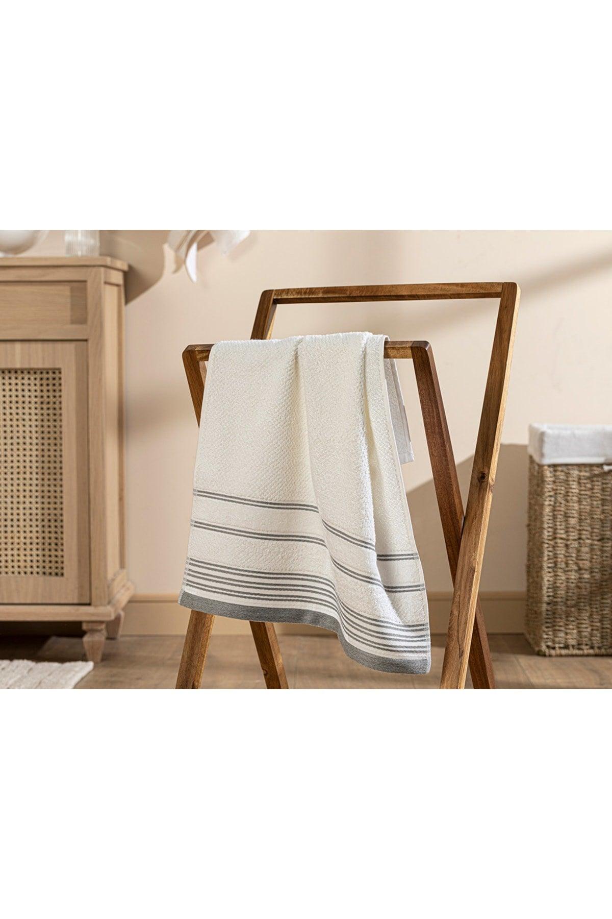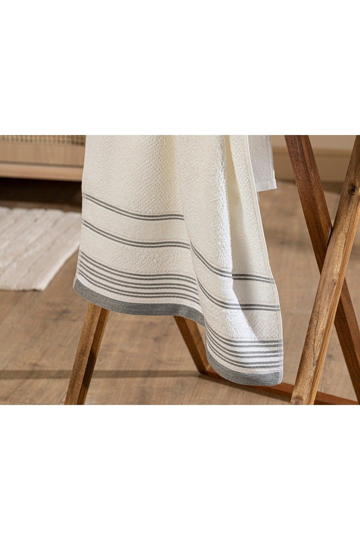 Toalla de cara a rayas de algodón Ivy 50x70 cm blanco - gris