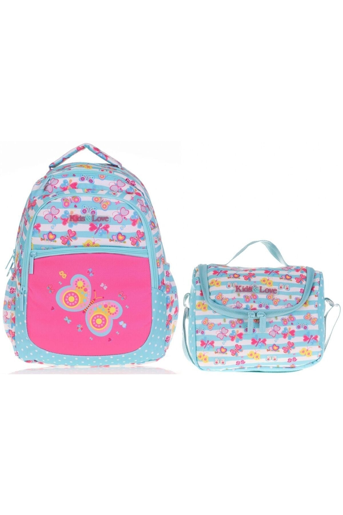 Kids&Love Pink-Turquoise Butterfly Primary School Bag And Lunch Set - Girls