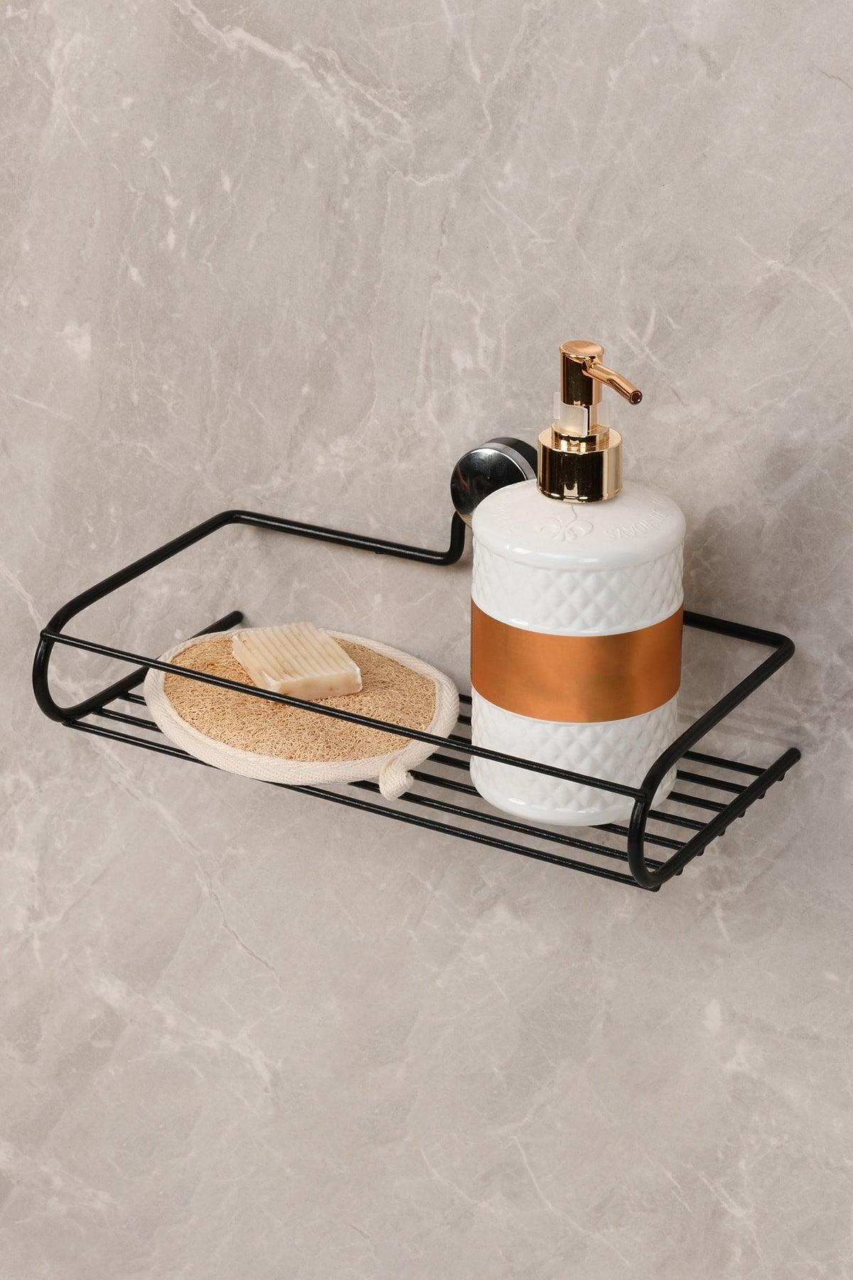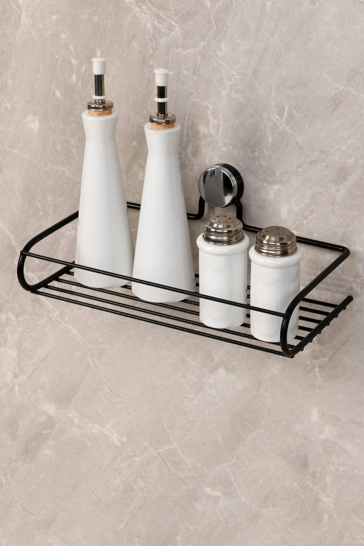 Estante de champú de acero inoxidable de por vida, estante de especias, estante de cocina, estante adhesivo negro