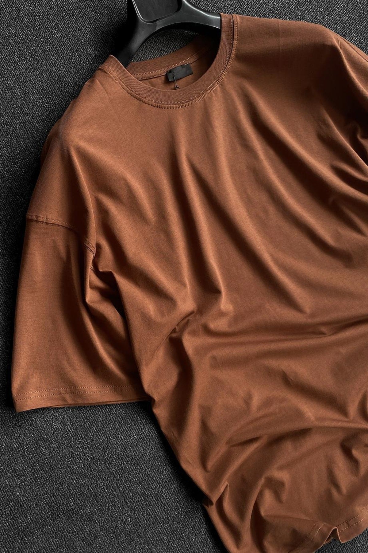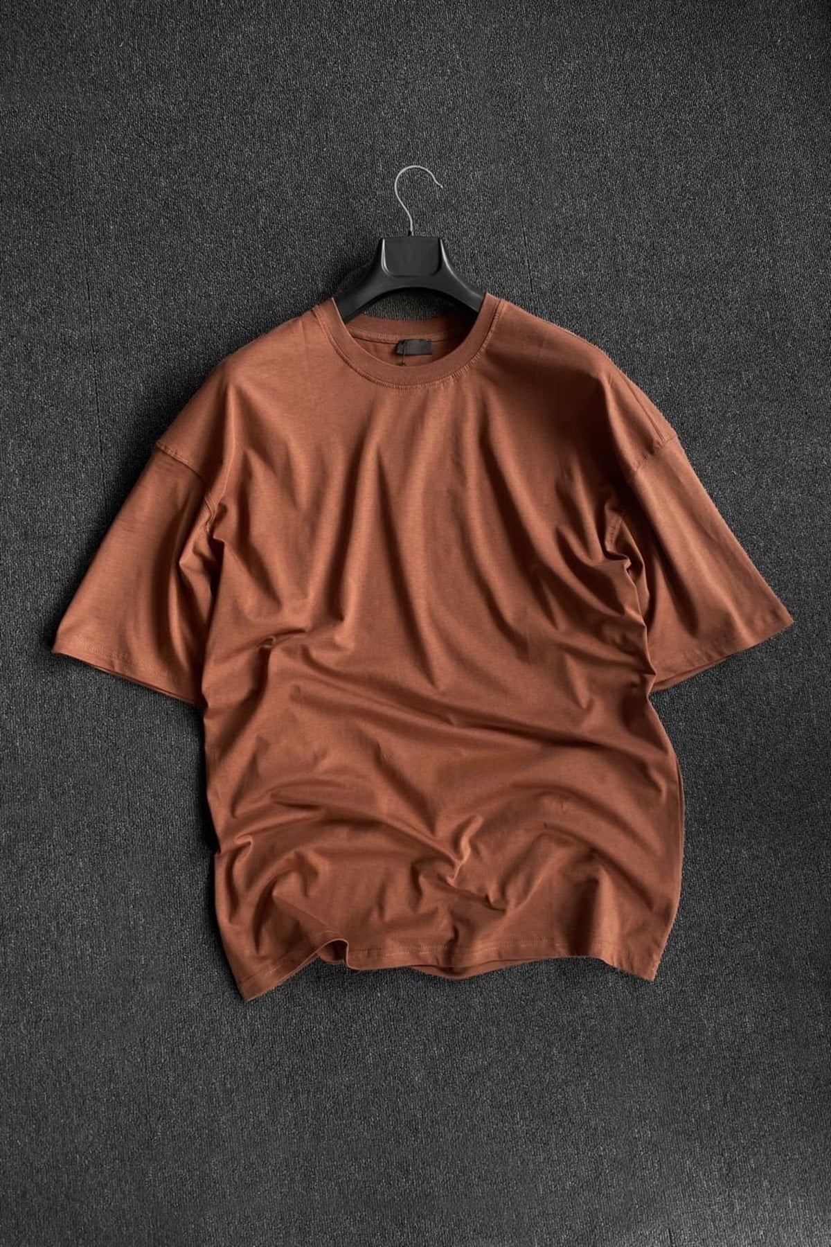 Men'S Brown 2 Thread Basic Oversize T-Shirt