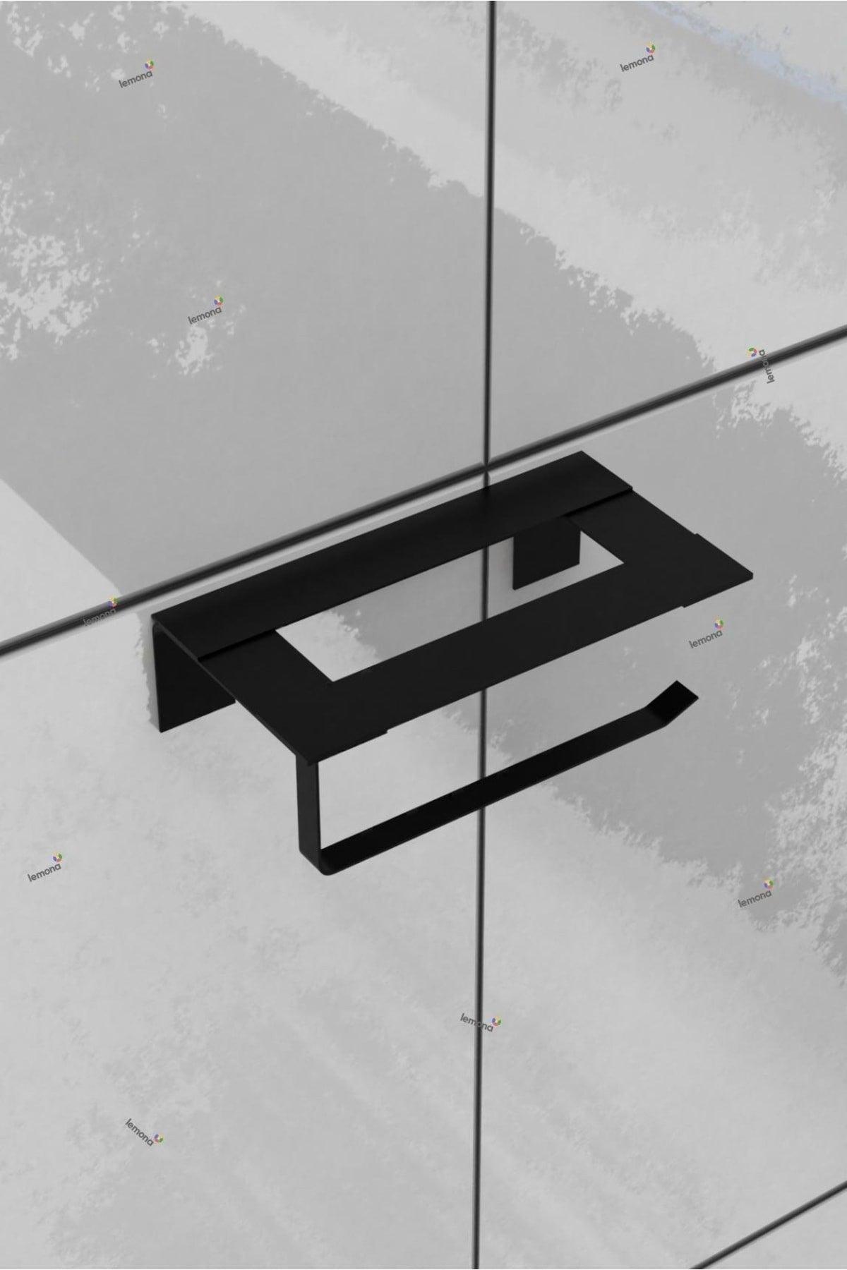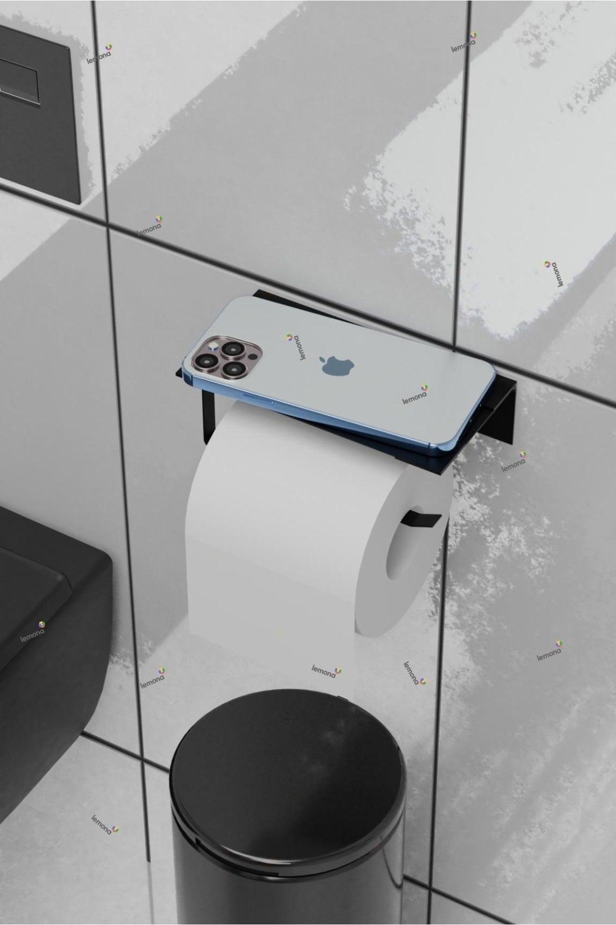 Estante de teléfono de metal estante de teléfonos negros papel higiénico moderno y papel higiénico apilado y papel moderno