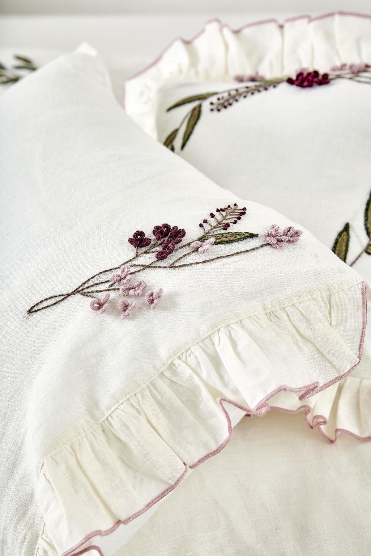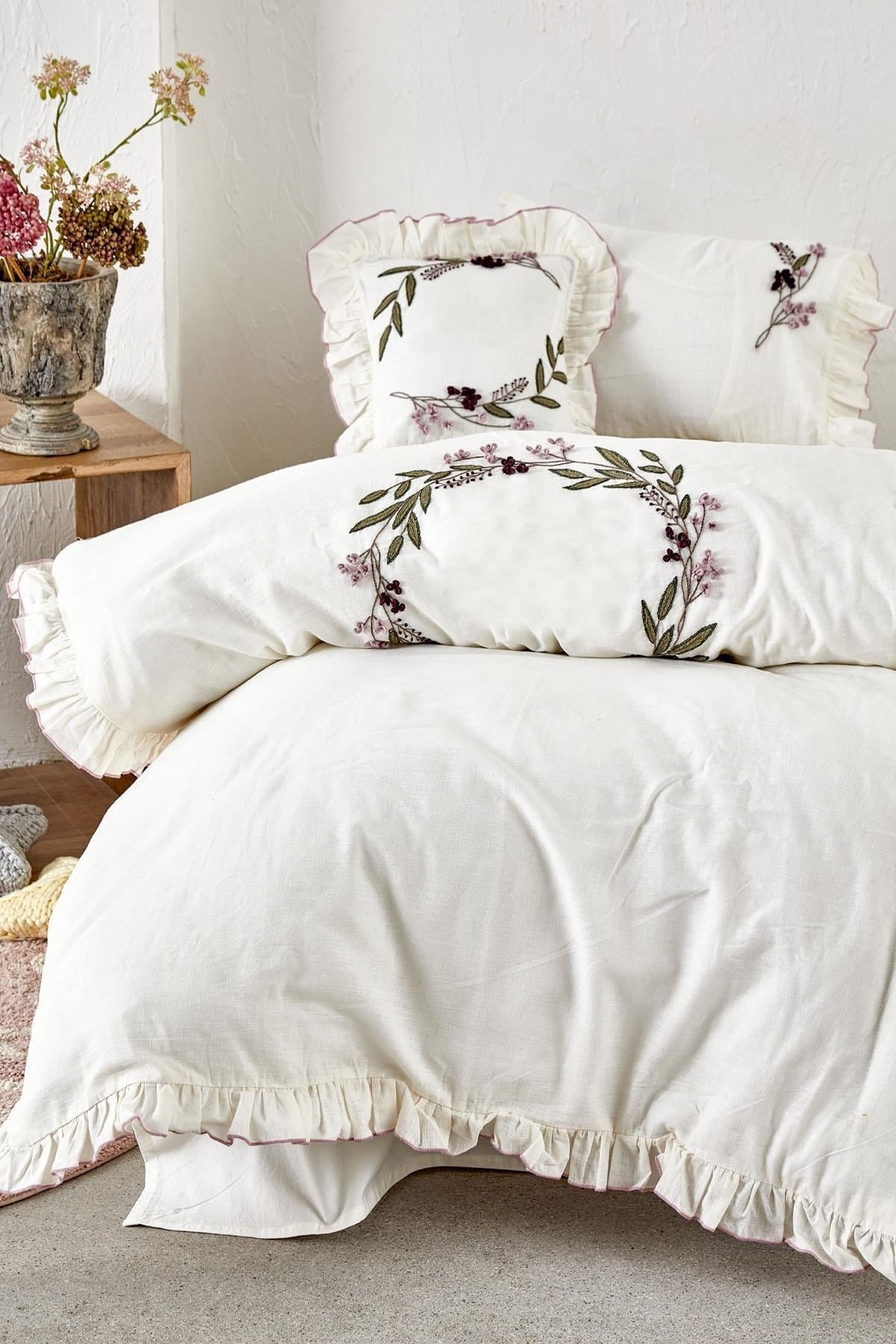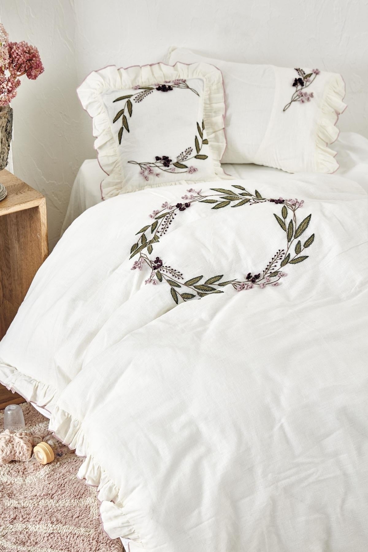 Olivia Baby Girl Duvet Cover Set 100% Linen Hand Embroidered Cream 100X150 Cm