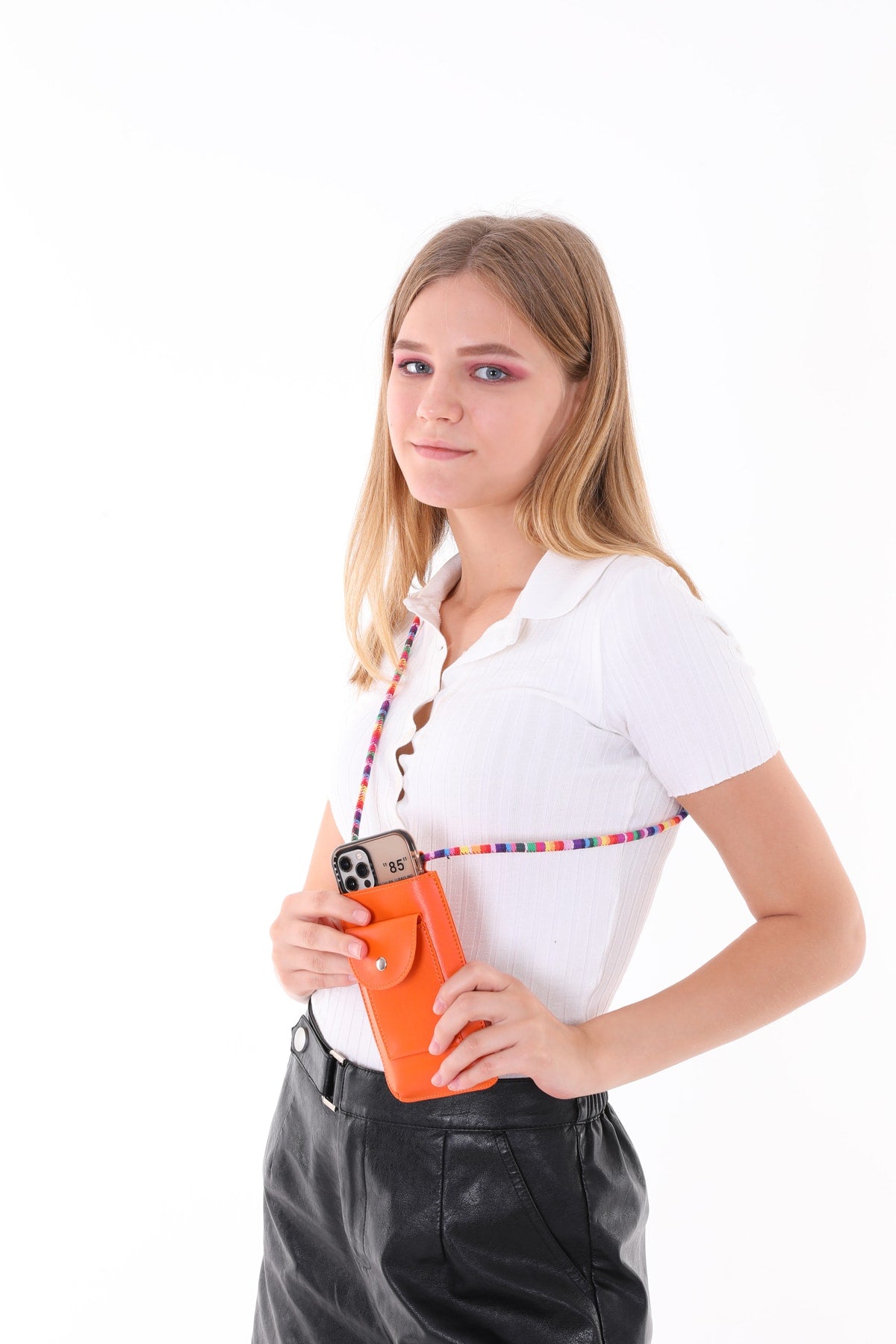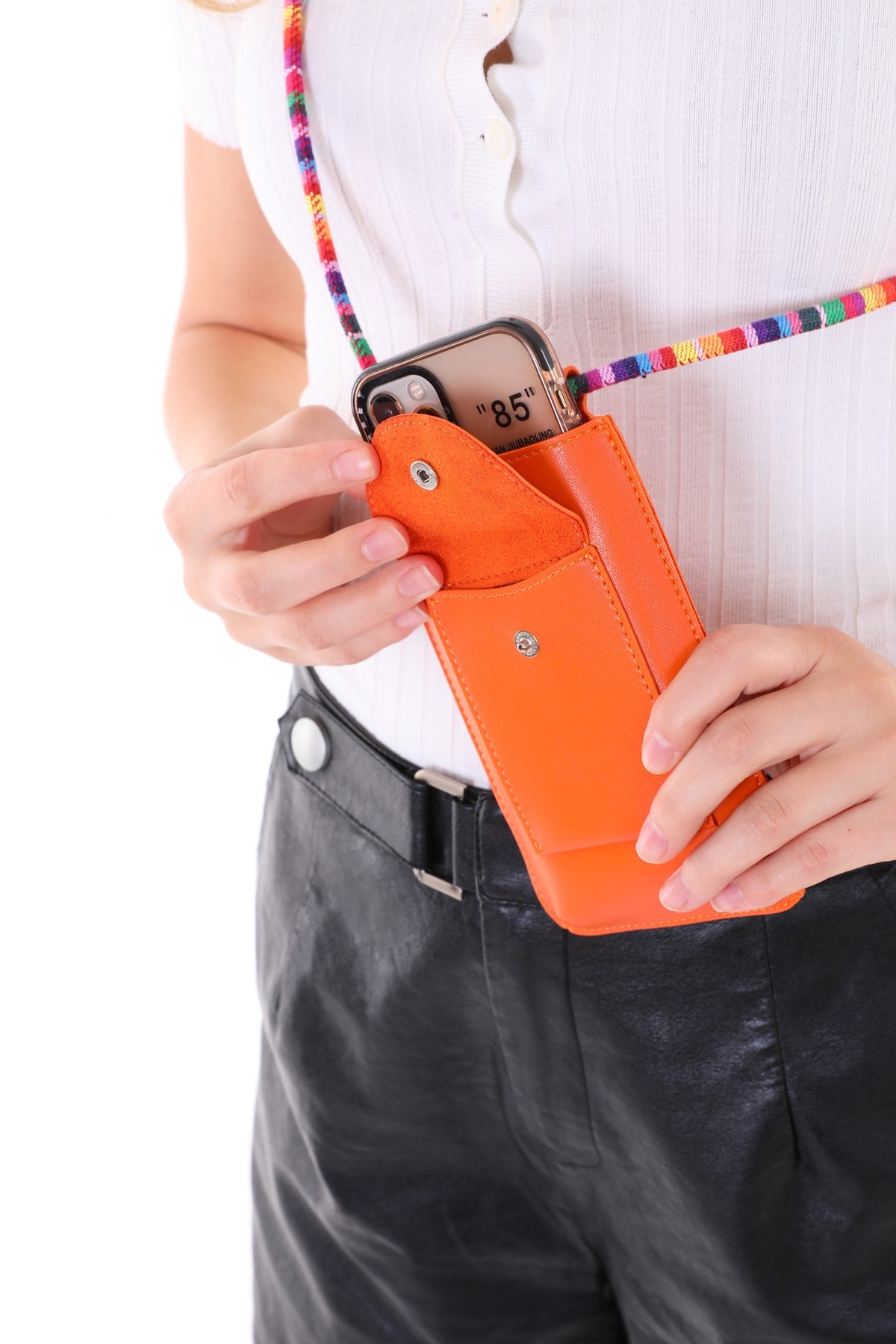 Orange Color Colorful Shoulder Strap Cell Phone Bag Card Holder