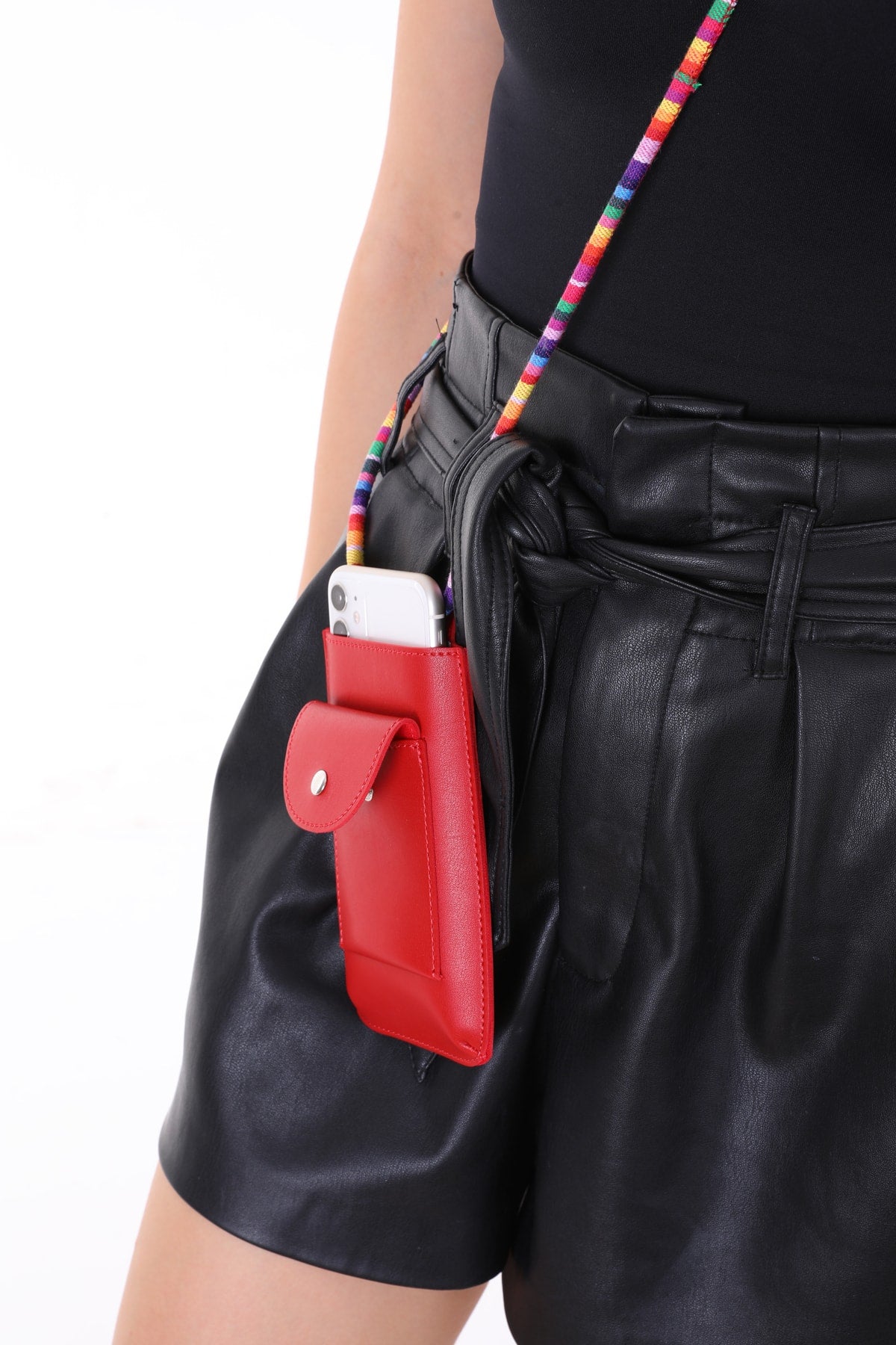 Red Color, Colorful Strap Shoulder Bag Cell Phone Bag Card Holder