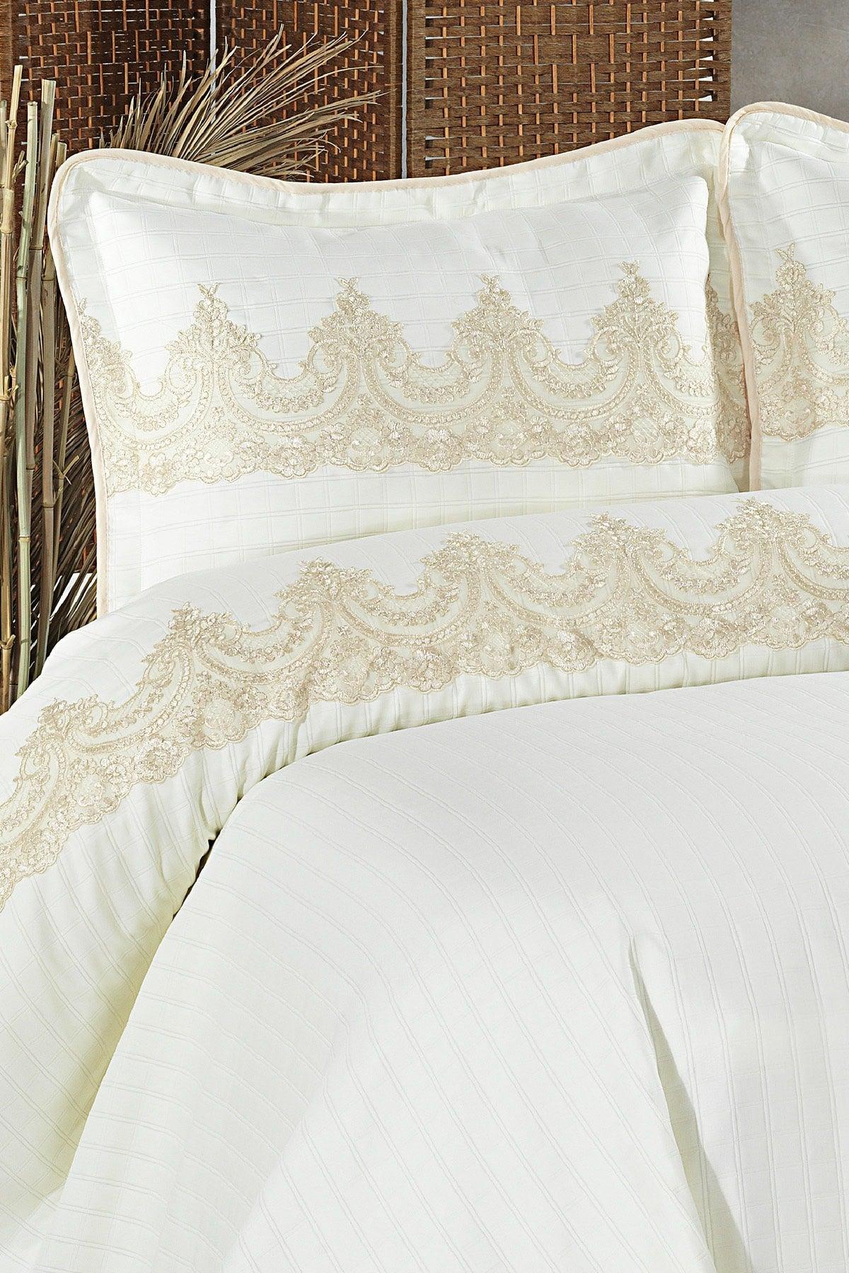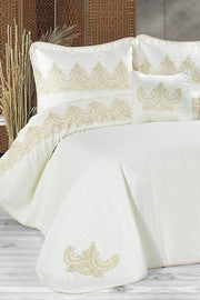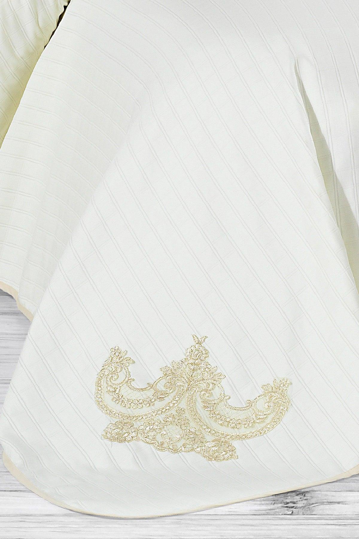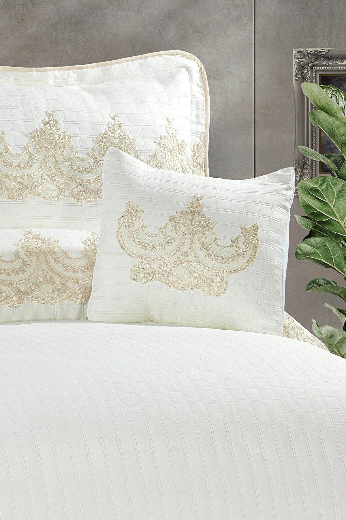 Romanos encaje francés Jacquard Bedspread Set doble (7 piezas) Crema