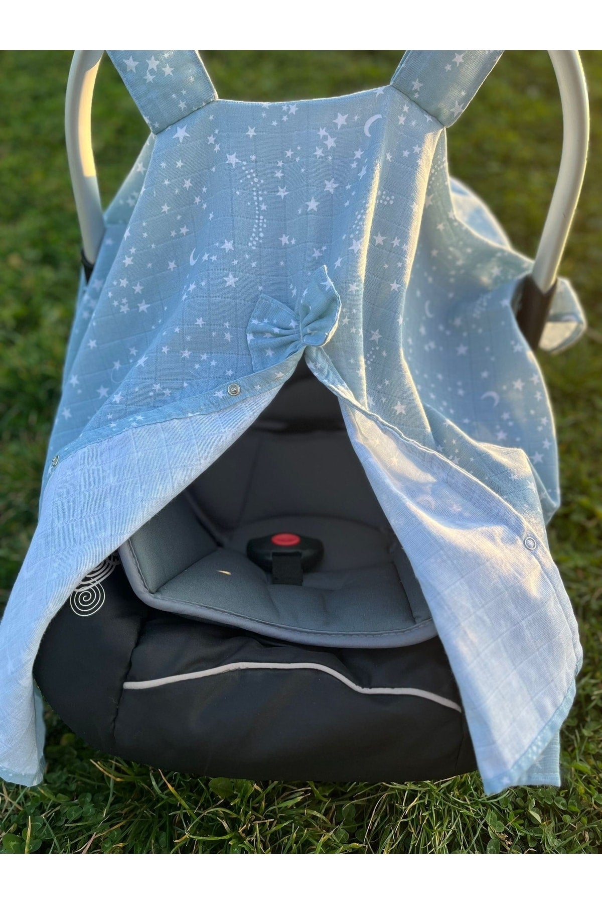 Run Baby Muslin Fabric Snap Fastener Stroller Cover (Light Blue Star) 75X100Cm