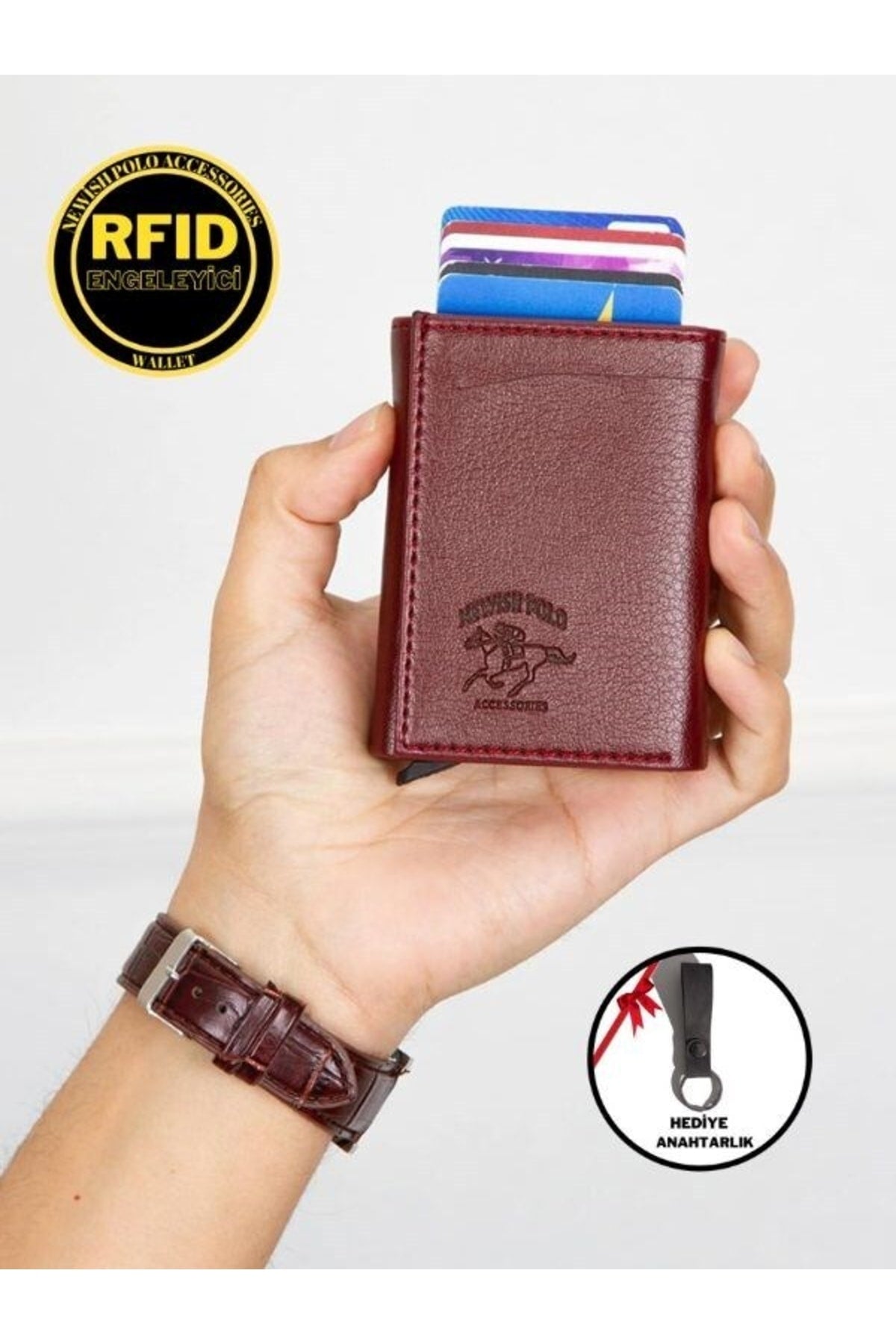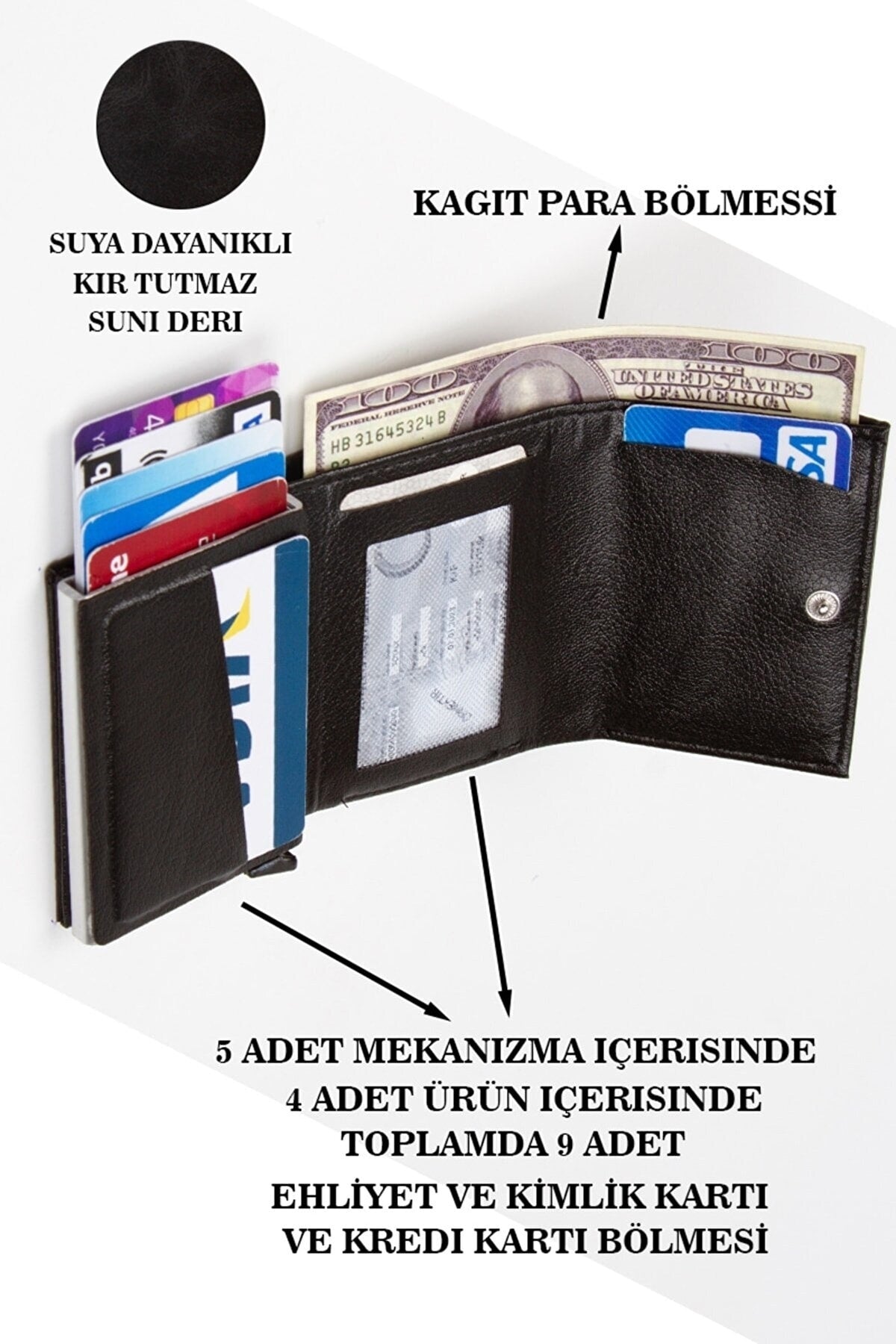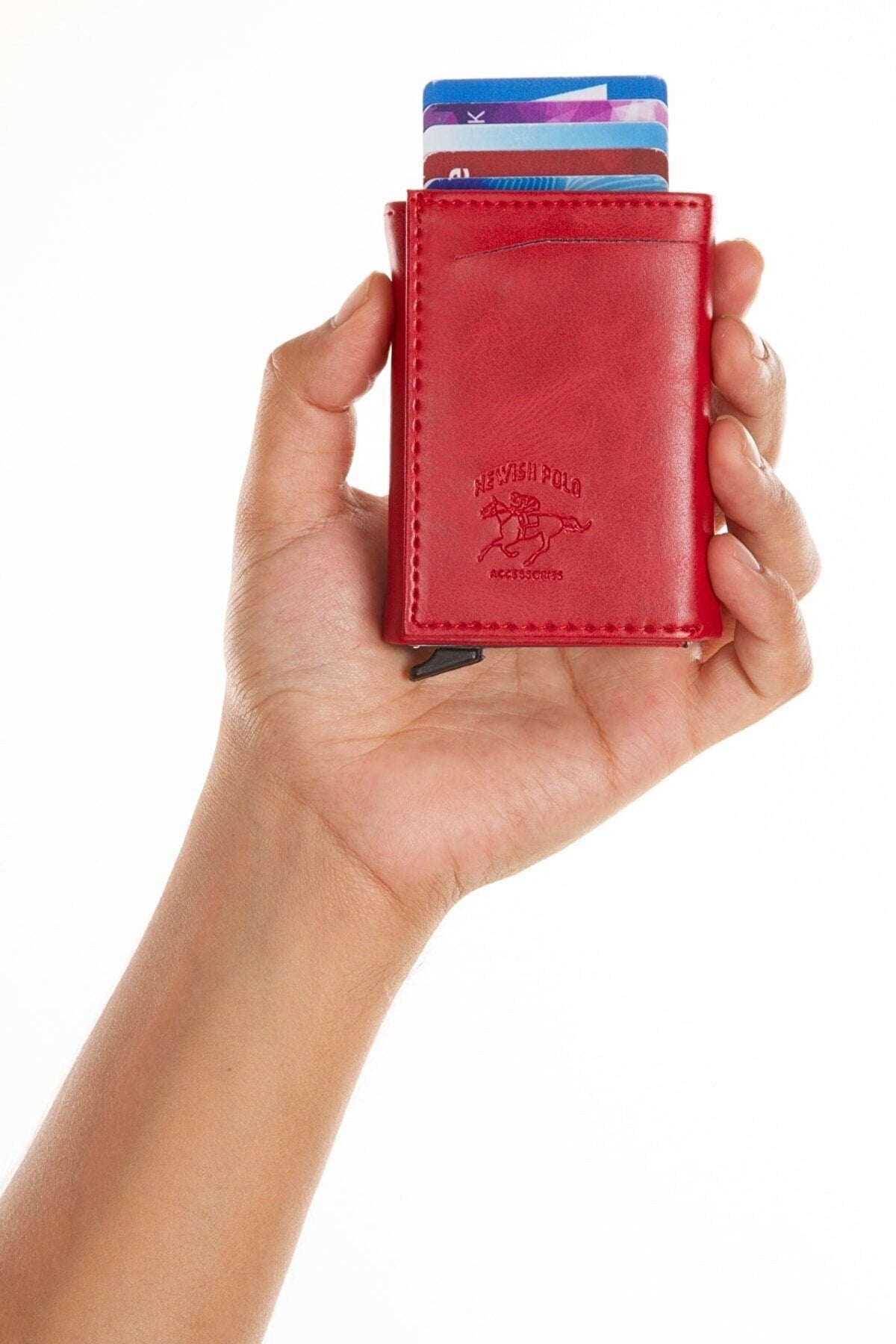 Unisex Leather Aluminum Mechanism Sliding Card Holder Wallet With Paper Money Compartment (7,5X10Cm)