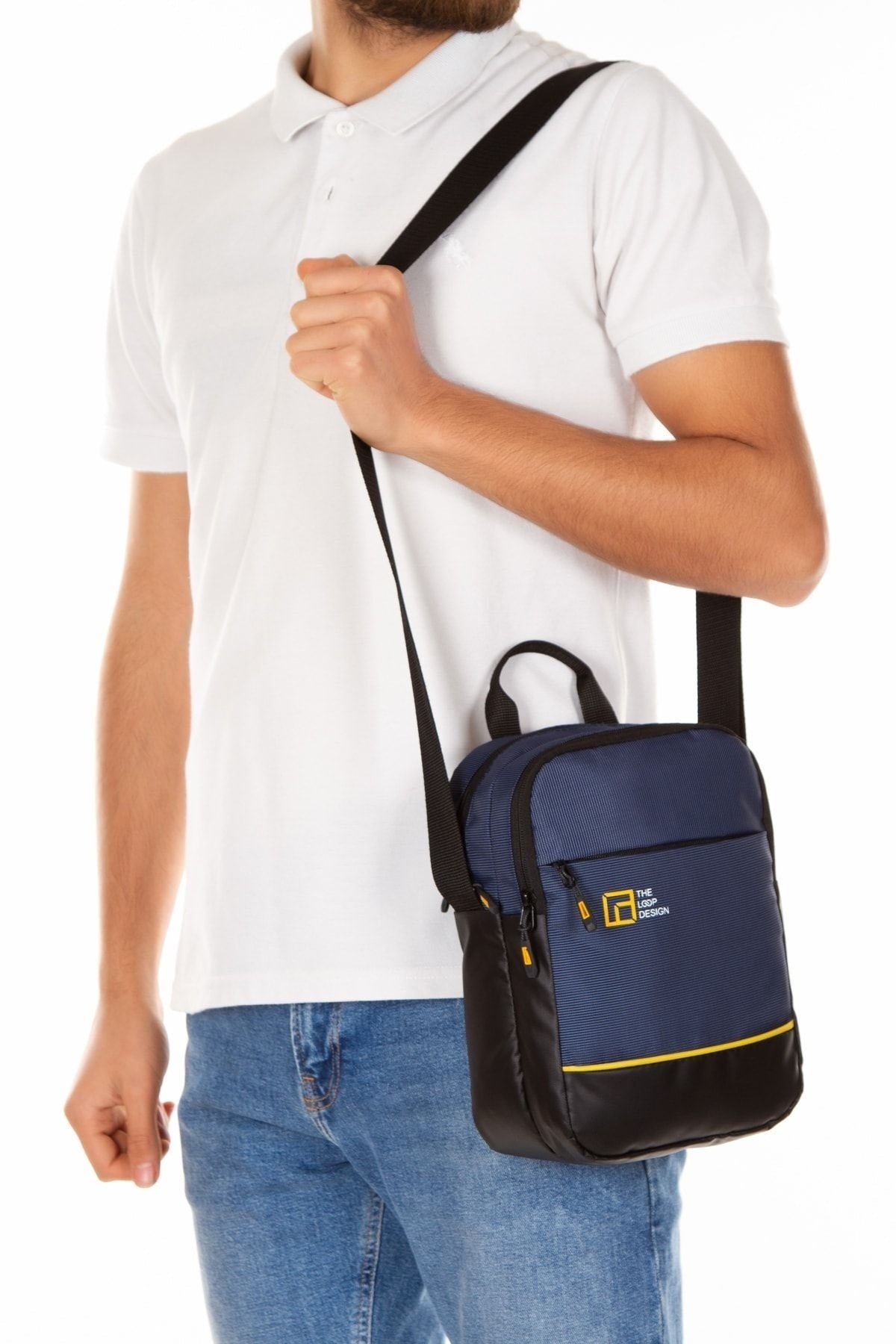 Unisex Navy Blue 6 Compartment Adjustable Long Strap Waterproof Portfolio Bag Cross Hand And Shoulder Bag