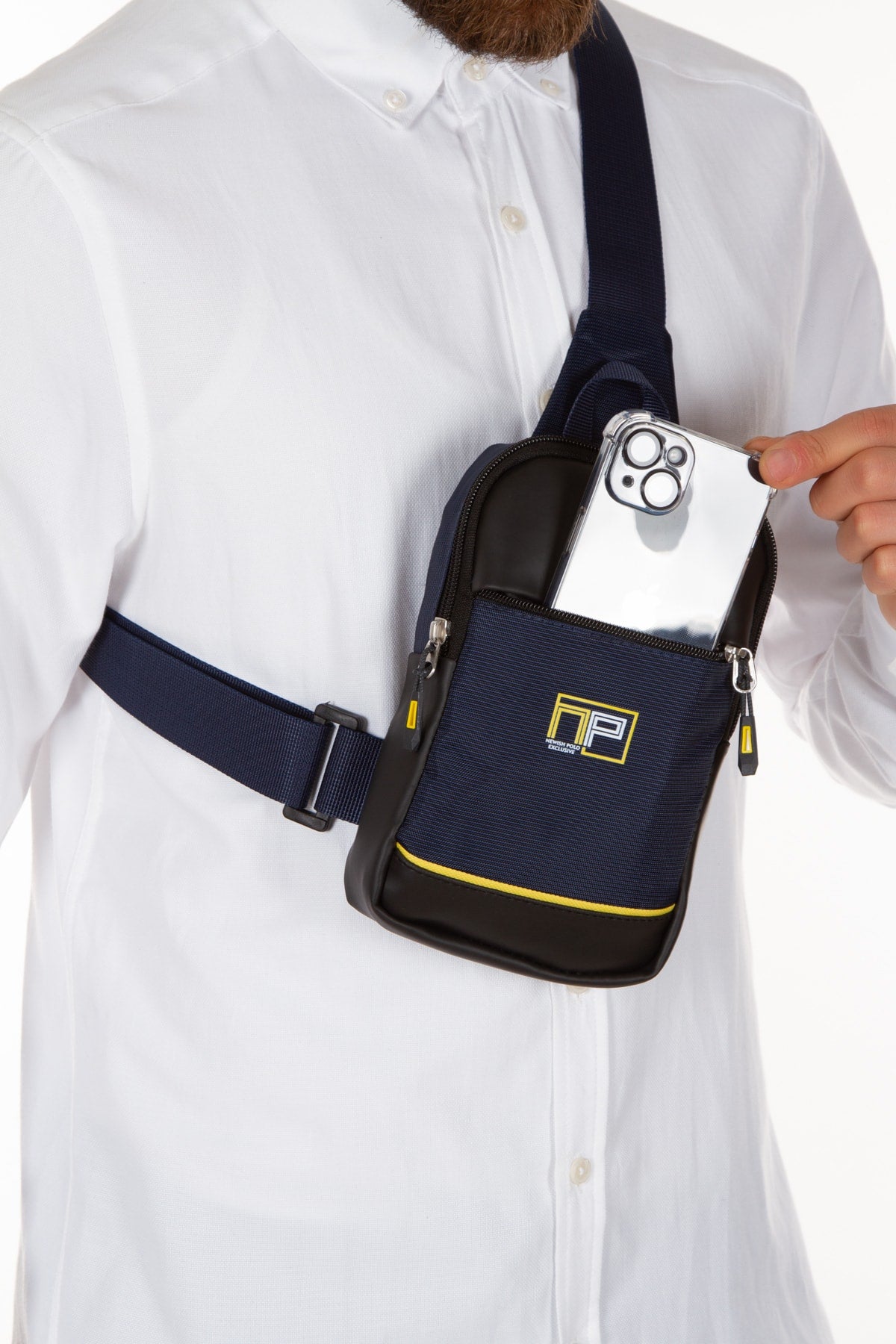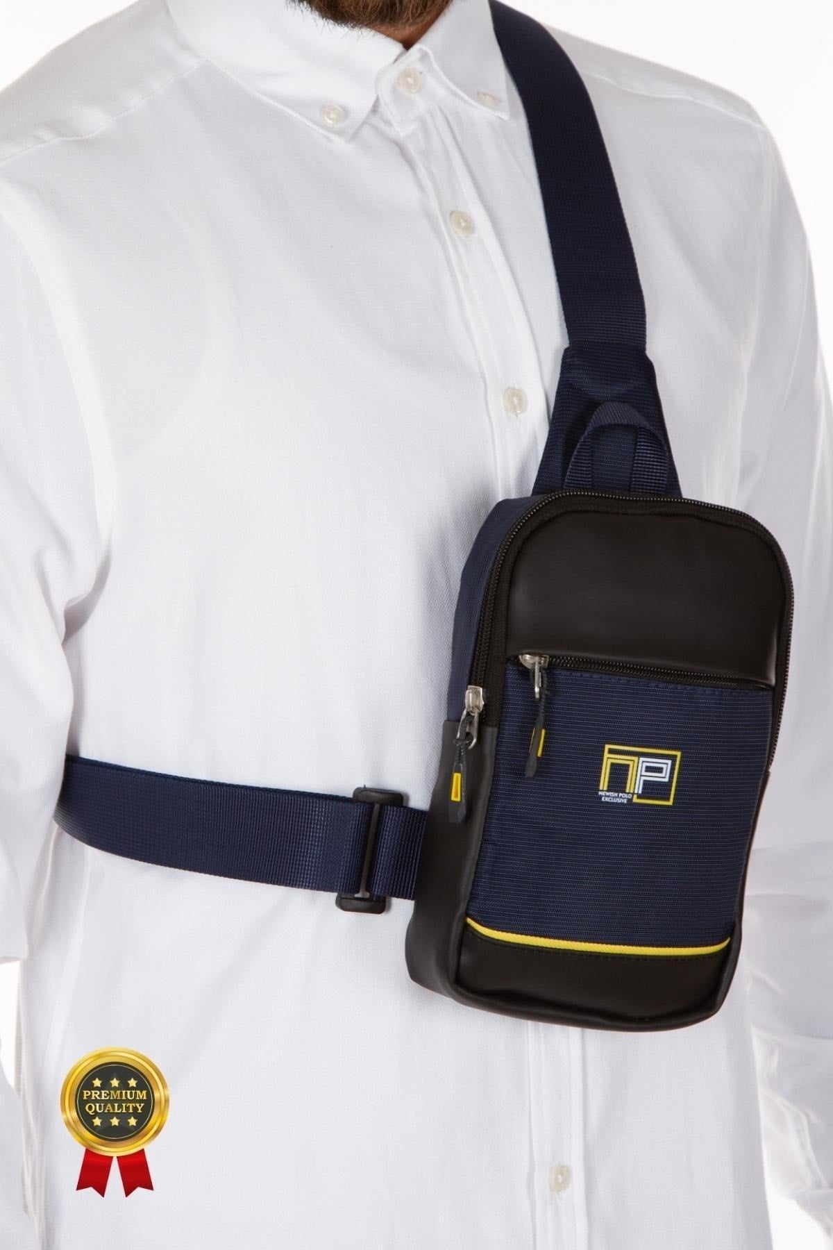 Unisex Navy Blue Cross Strap Chest And Shoulder Bag Daily Bag With Phone Compartment
