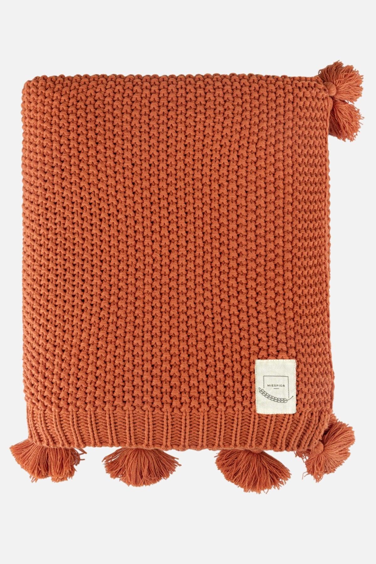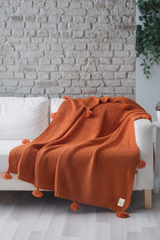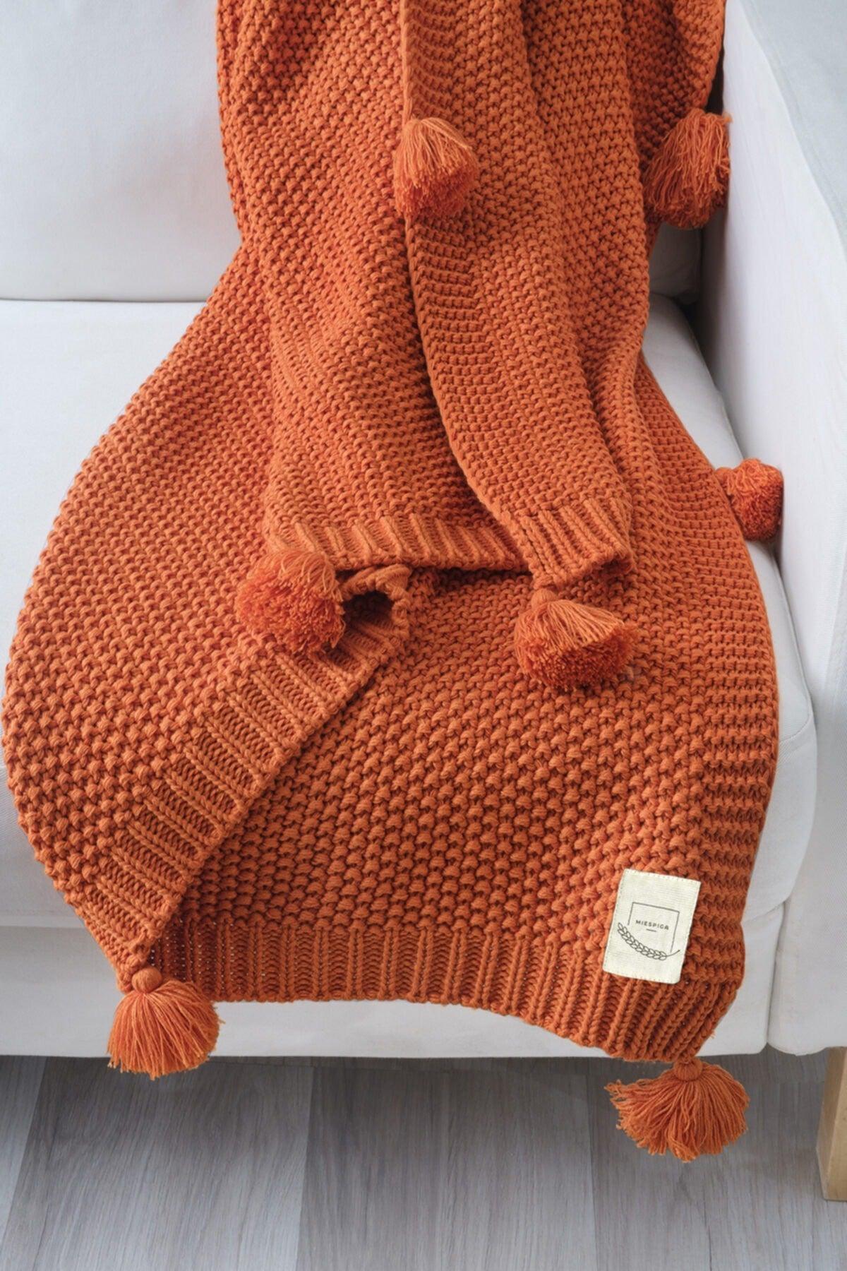 Valentine's Day Gift Coco Rice Knitted Pompom Knitwear TV Blanket Throw Orange - Swordslife