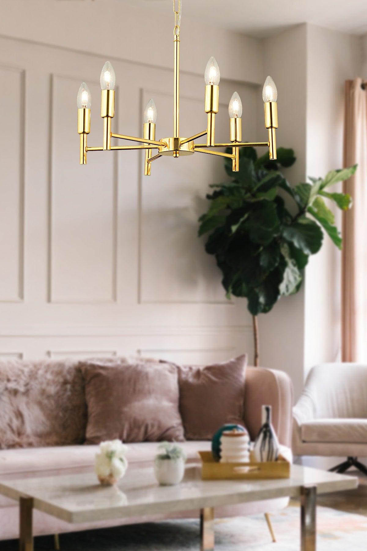 Vaneo 6-Piece Gold Modern Young Room Kitchen Living Room Chandelier