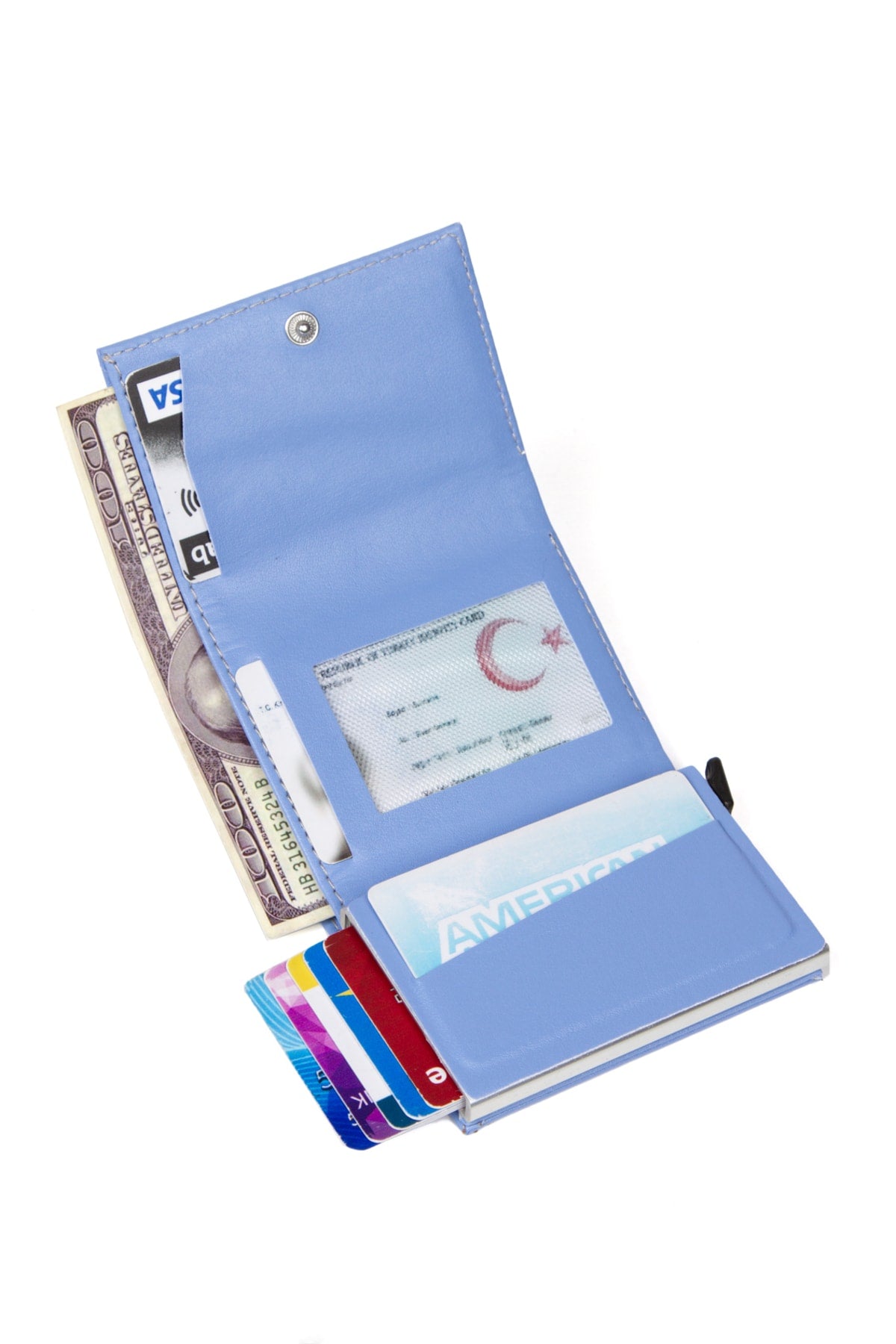 Women'S Leather Aluminum Mechanism Sled Card Holder Wallet With Paper Money Compartment (7,5X10Cm)