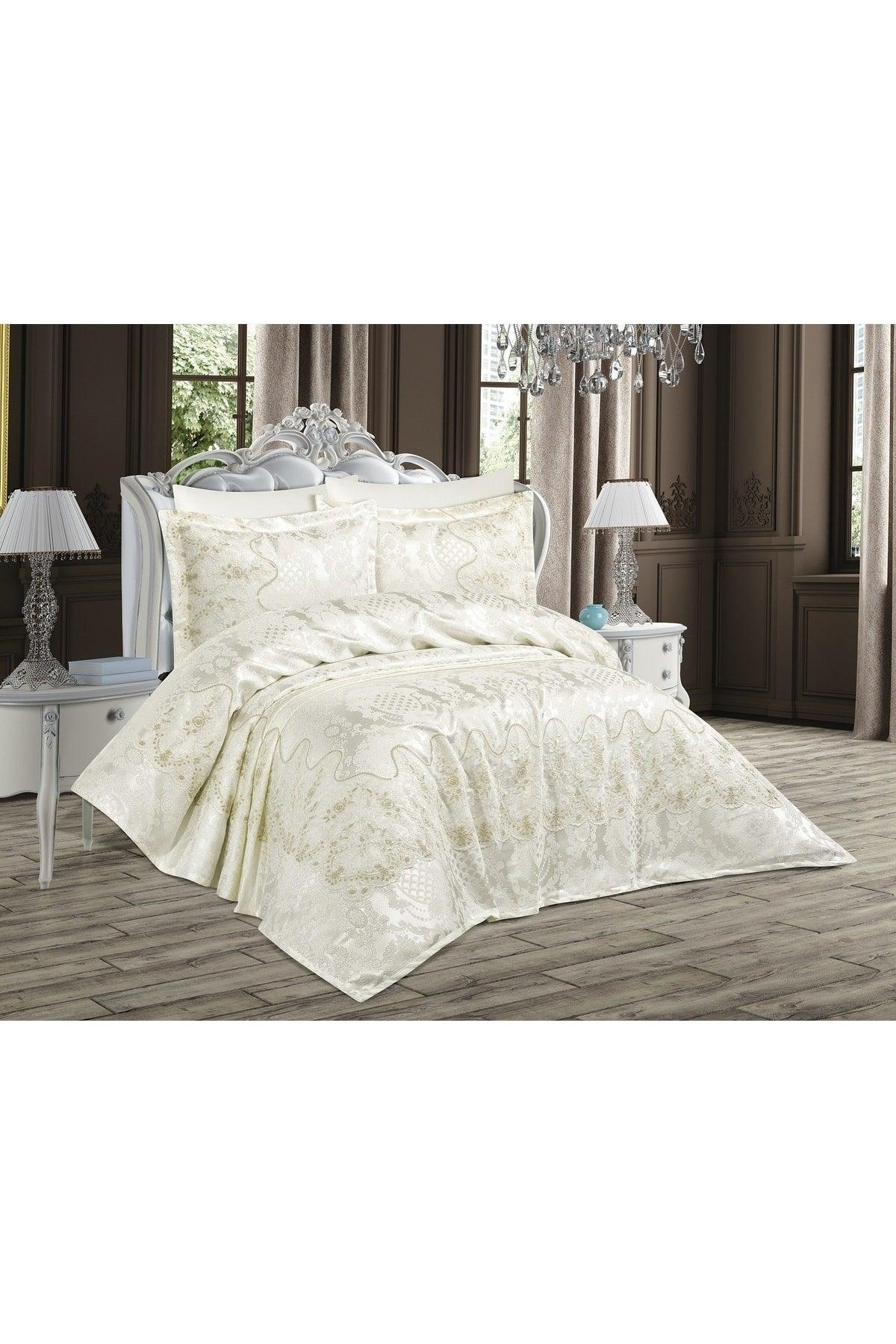 Alya 3 pièces Crème Set Pread Double (couvercle de lit + 2 oreillers)