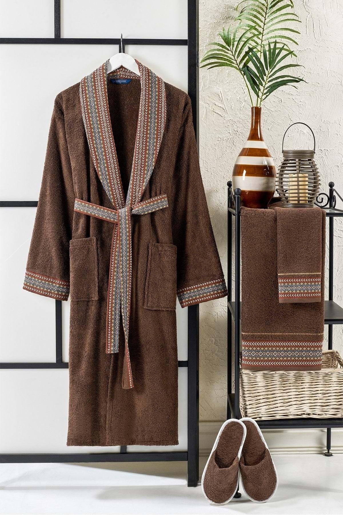 ANSAAJ JACQUARD 4 pièces Paintes de peignoir brun