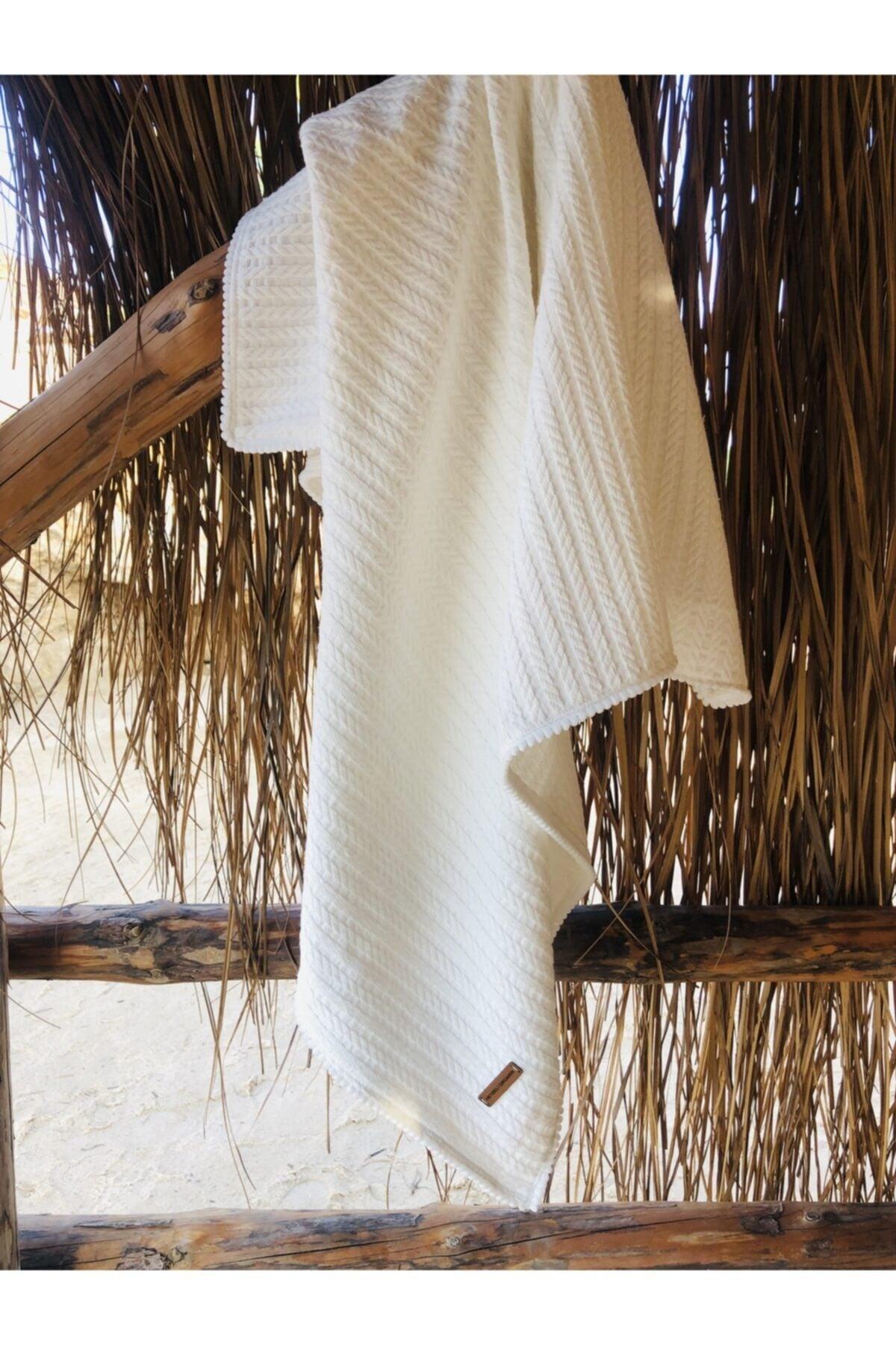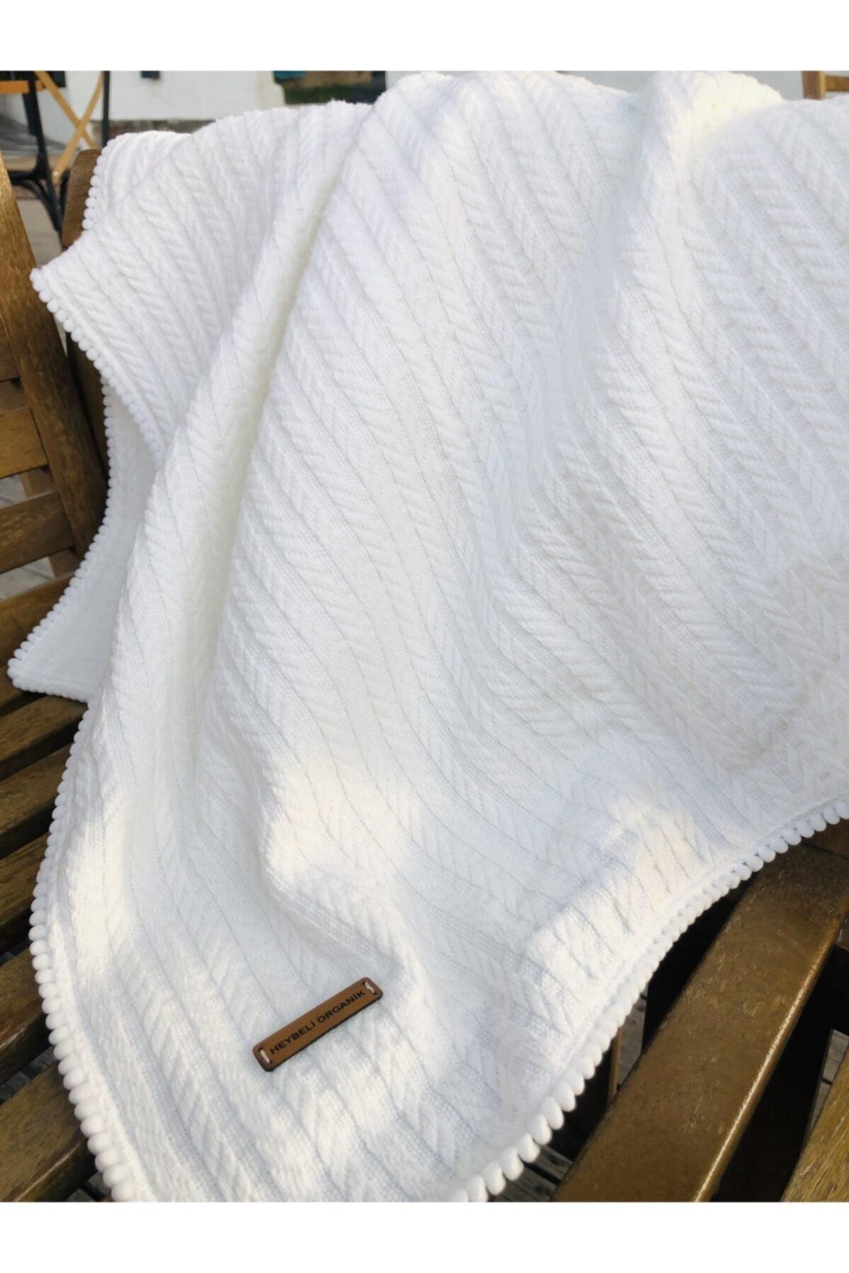 Cunda Série Tricoted Pattern 100% Cotton Baby Pique Couverture Ecru // 110x100 cm