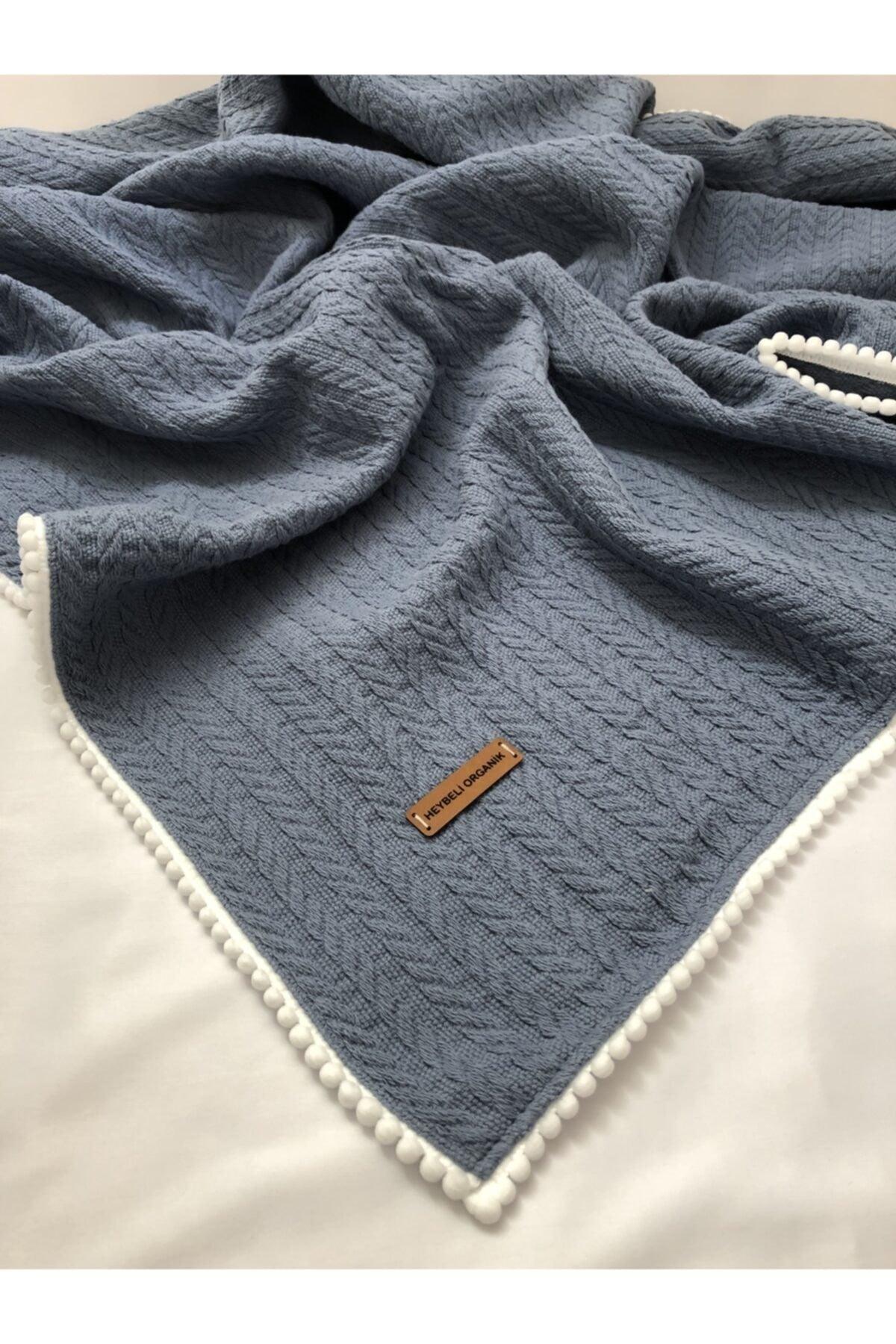 Cunda Série Tricoted Pattern 100% Cotton Baby Pique Couverture Indigo // 110x100 cm