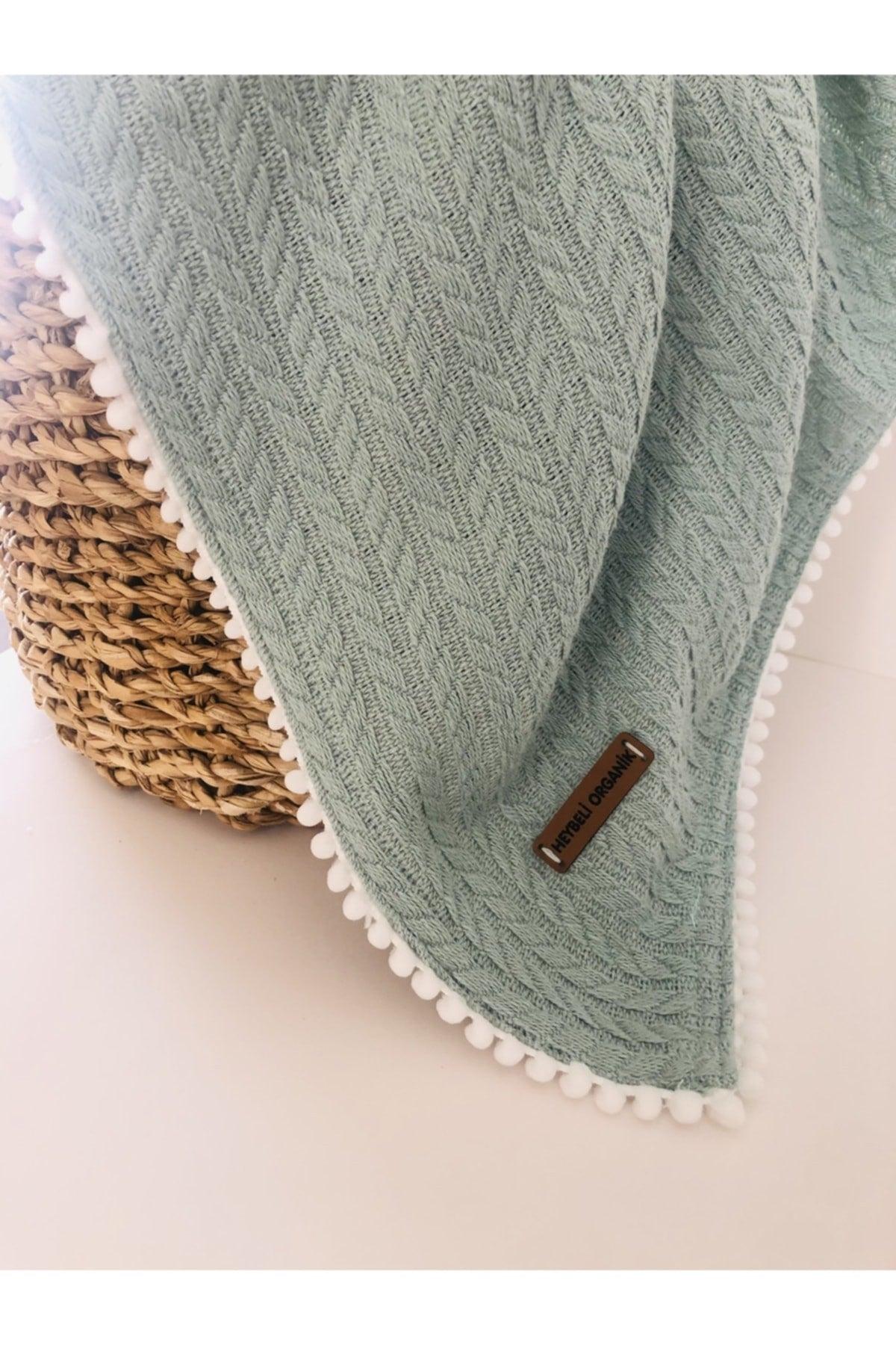 Modèle en trinage de la série CUNDA 100% coton bébé couverture de couverture Green // 110x100 cm