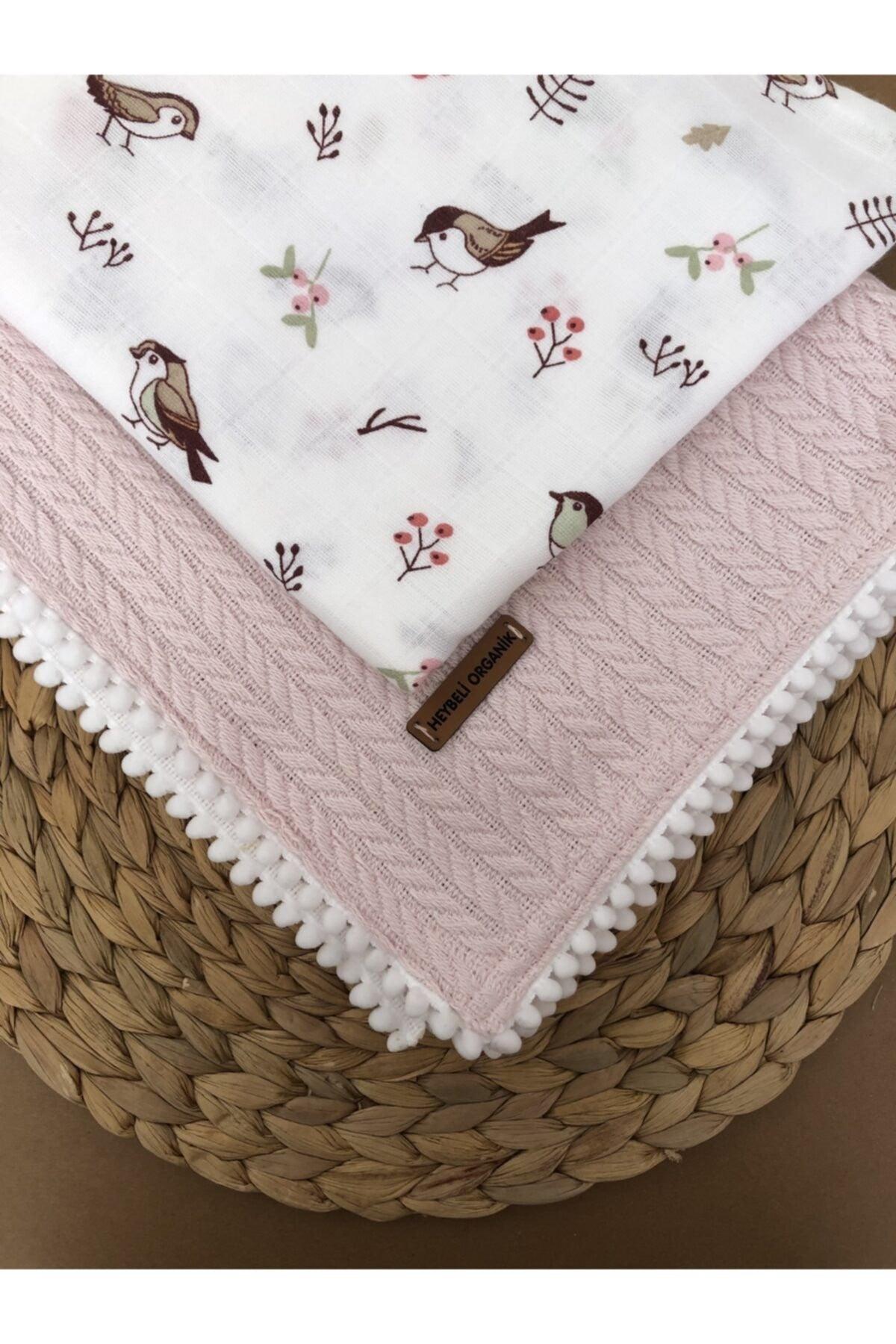 Cunda Série Tricoted Pattern 100% coton Babinet Bouette rose douce // 110x100 cm