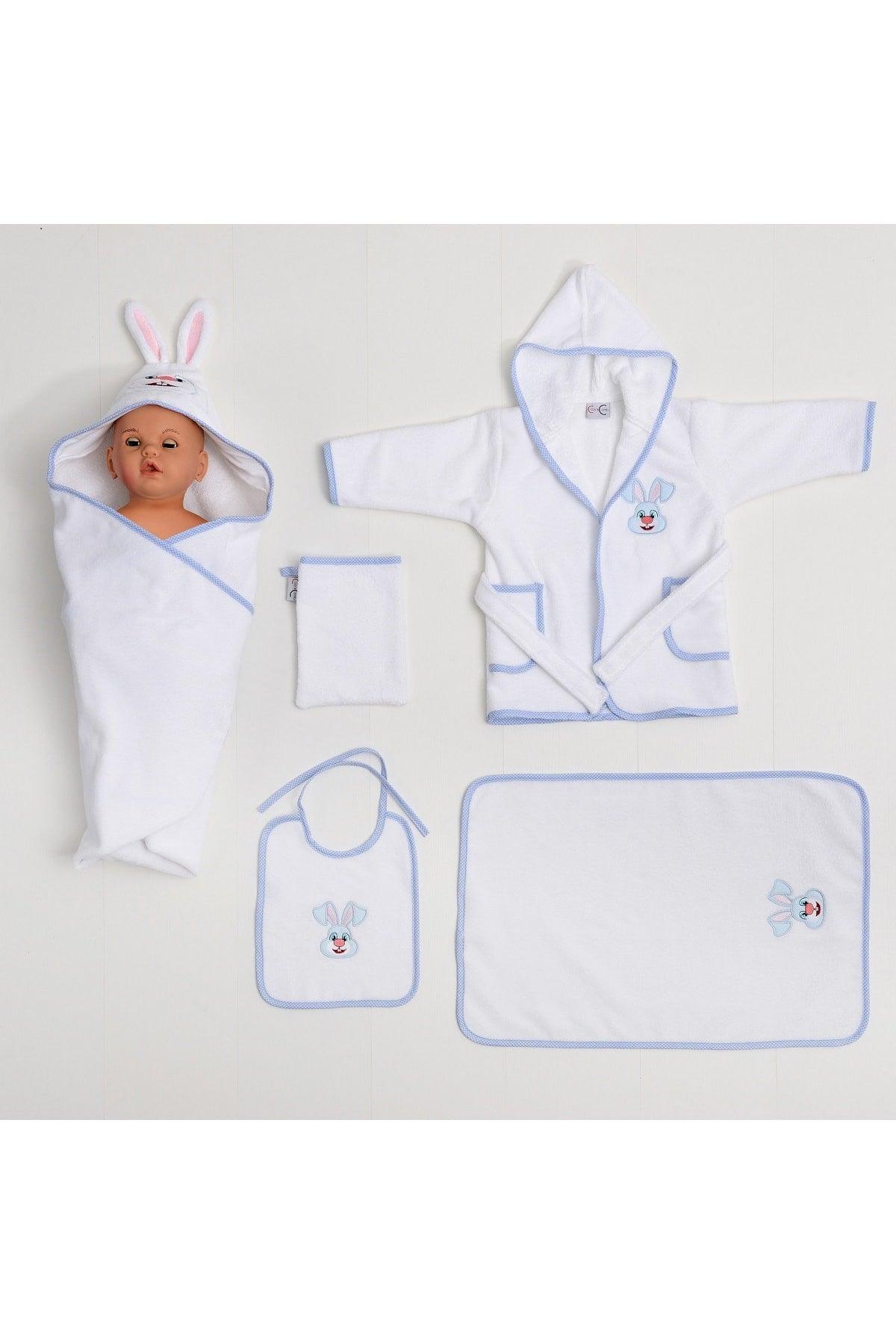 Peignoir de bébé 5 pièces ensemble bleu lapin