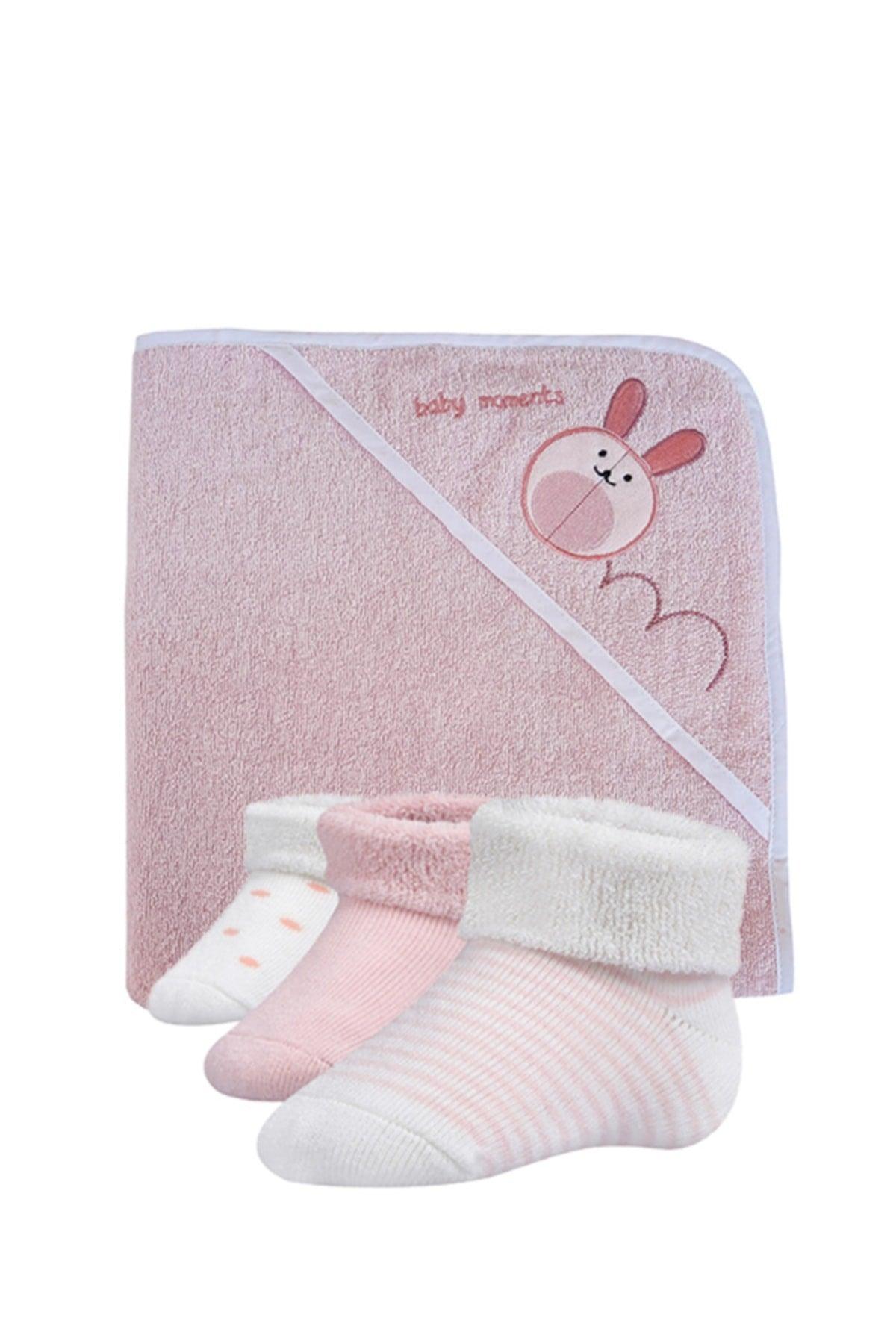 Serviette à swaddle à capuche 75x75 cm + 3 pièces chaussettes de serviettes pour bébé