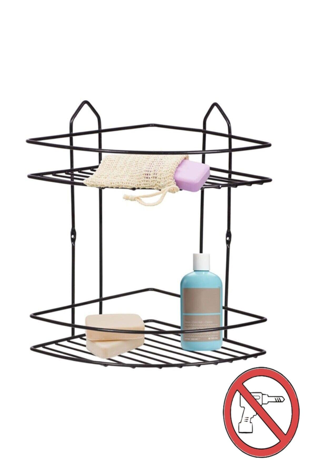 Adhésif à la vie en acier inoxydable Adhésif à 2 niveaux Salle de bain Hampooing Organisateur Black Annex-02
