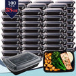 100pcs/ 200pcs Black Rectangular Meal Prep Containers 38oz Stackable And Leakproof Food Storage Container Set Disposale Bento Box Ideal for Takeout And Picnic Microwave & Dishwasher & Freezer Safe ...
