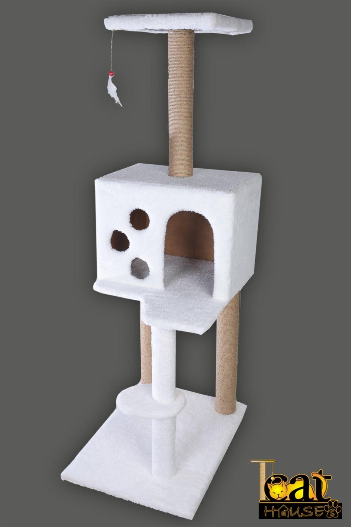 Cat grattant, chat grattant, plate-forme de grattage de chat, tissu moelleux, blanc