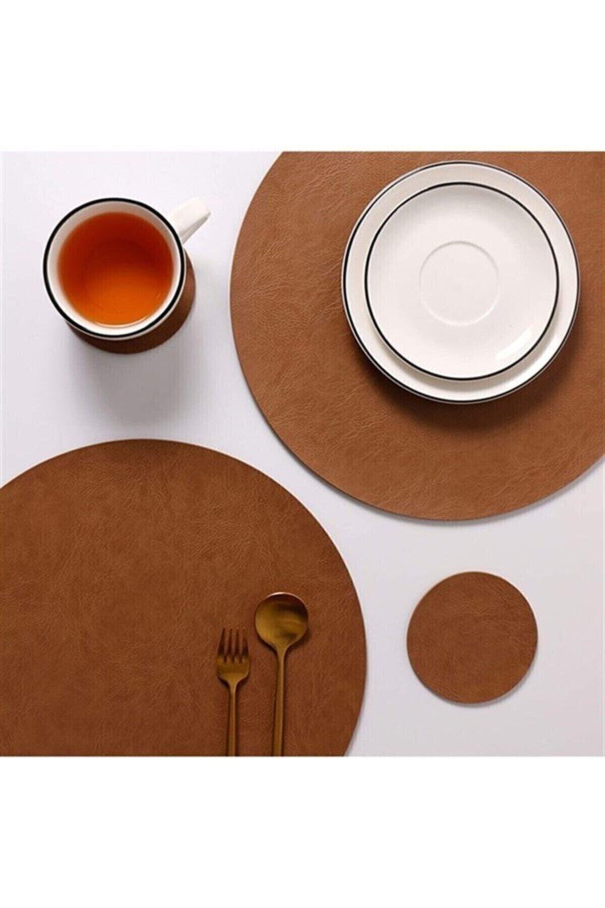 12 pièces Tan Round Cuir Placemat Suplla résistant à la chaleur non glissante lavable