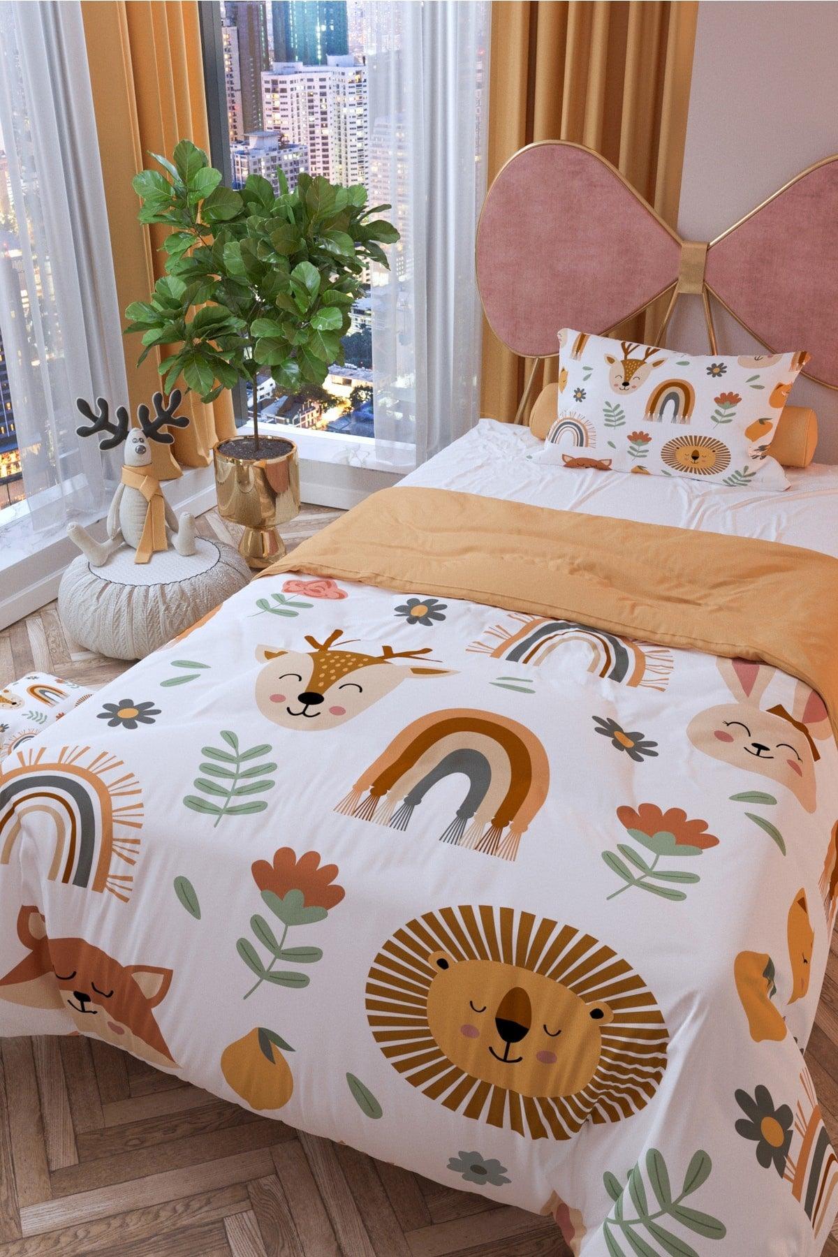 Rainbow And Animals Double Sided Kids Duvet Cover Set Polycotton