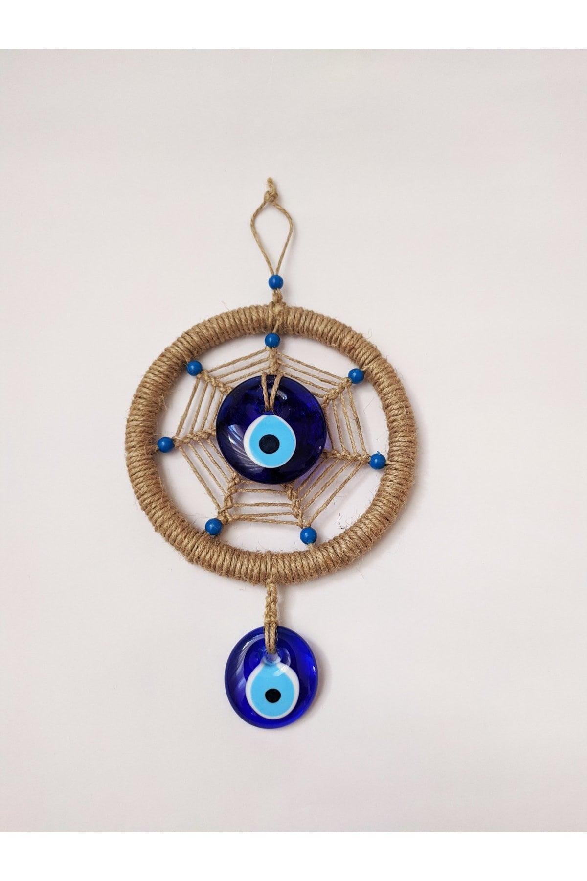Décoration murale, nouvelle saison, Raffia Wooden Eye Model 20x20 cm Glass Evil Eye Bead Wall Ornement