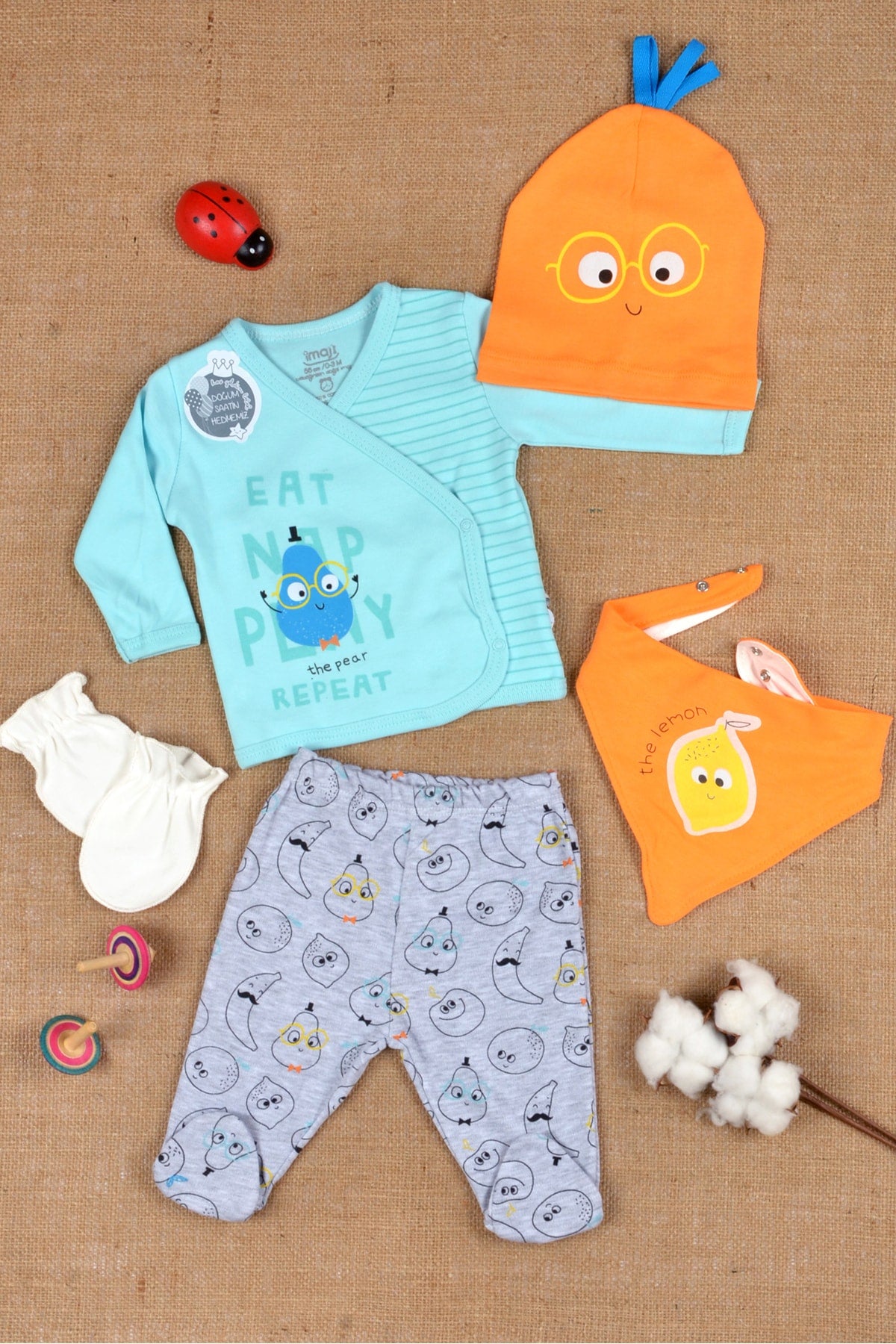100% Cotton, 5 Piece Newborn Set & Out Of Hospital 0-3 Months