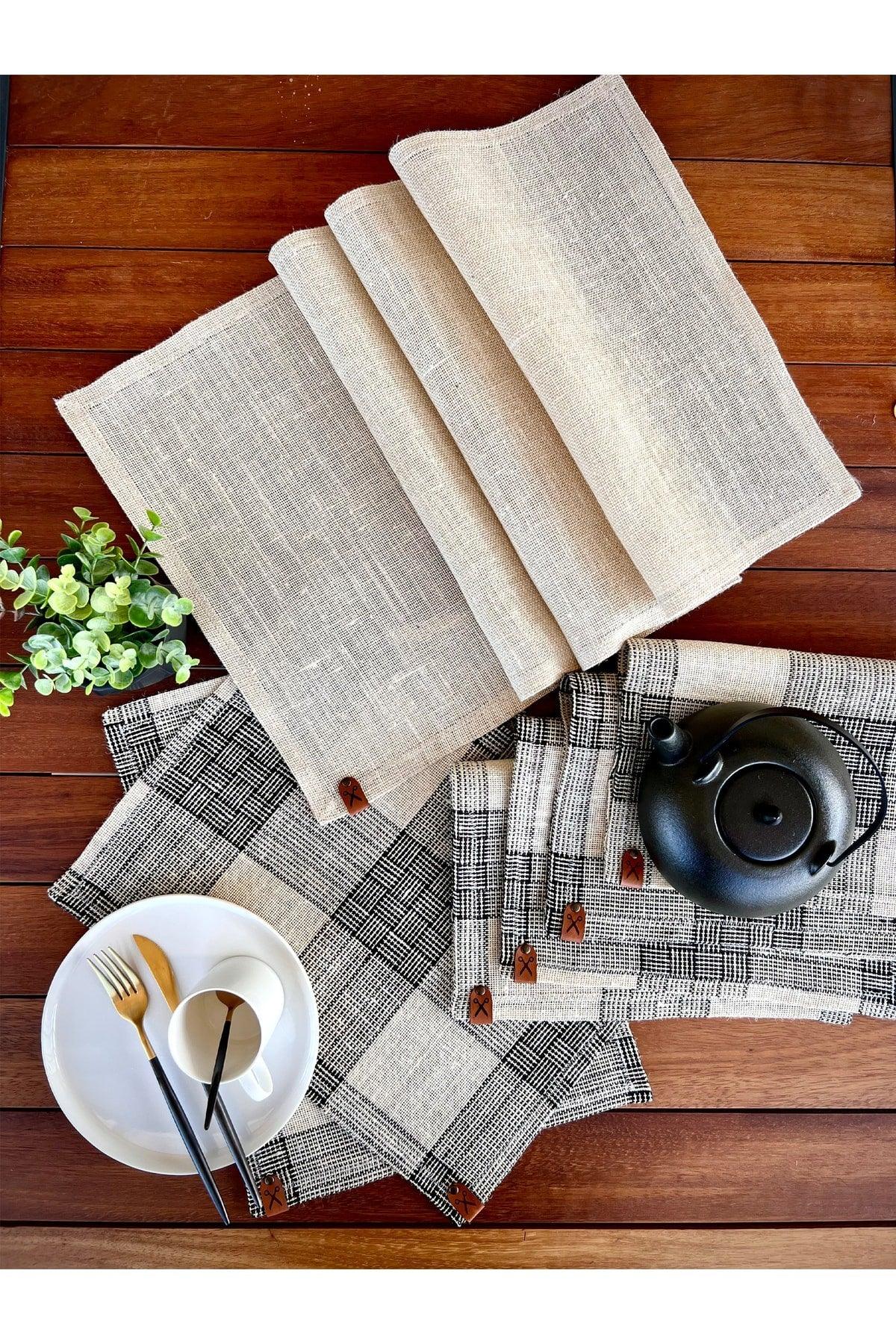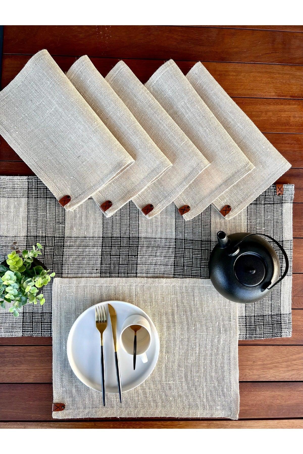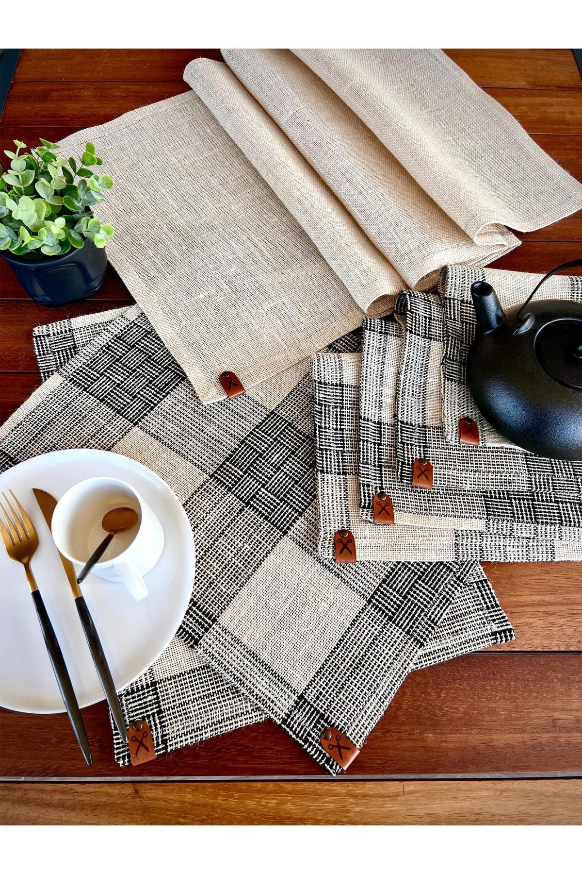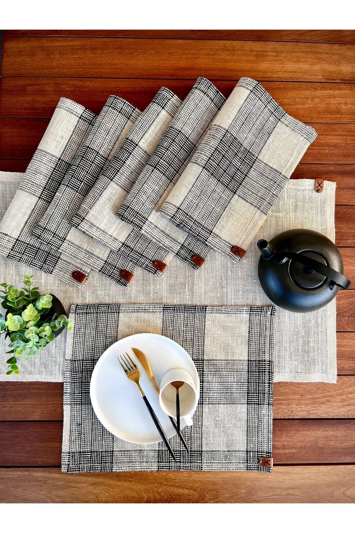 Runner 136x36cm + 6 pièces Ensemble de couvercle de lieux rectangulaires / ensemble de présentation en tissu ranır