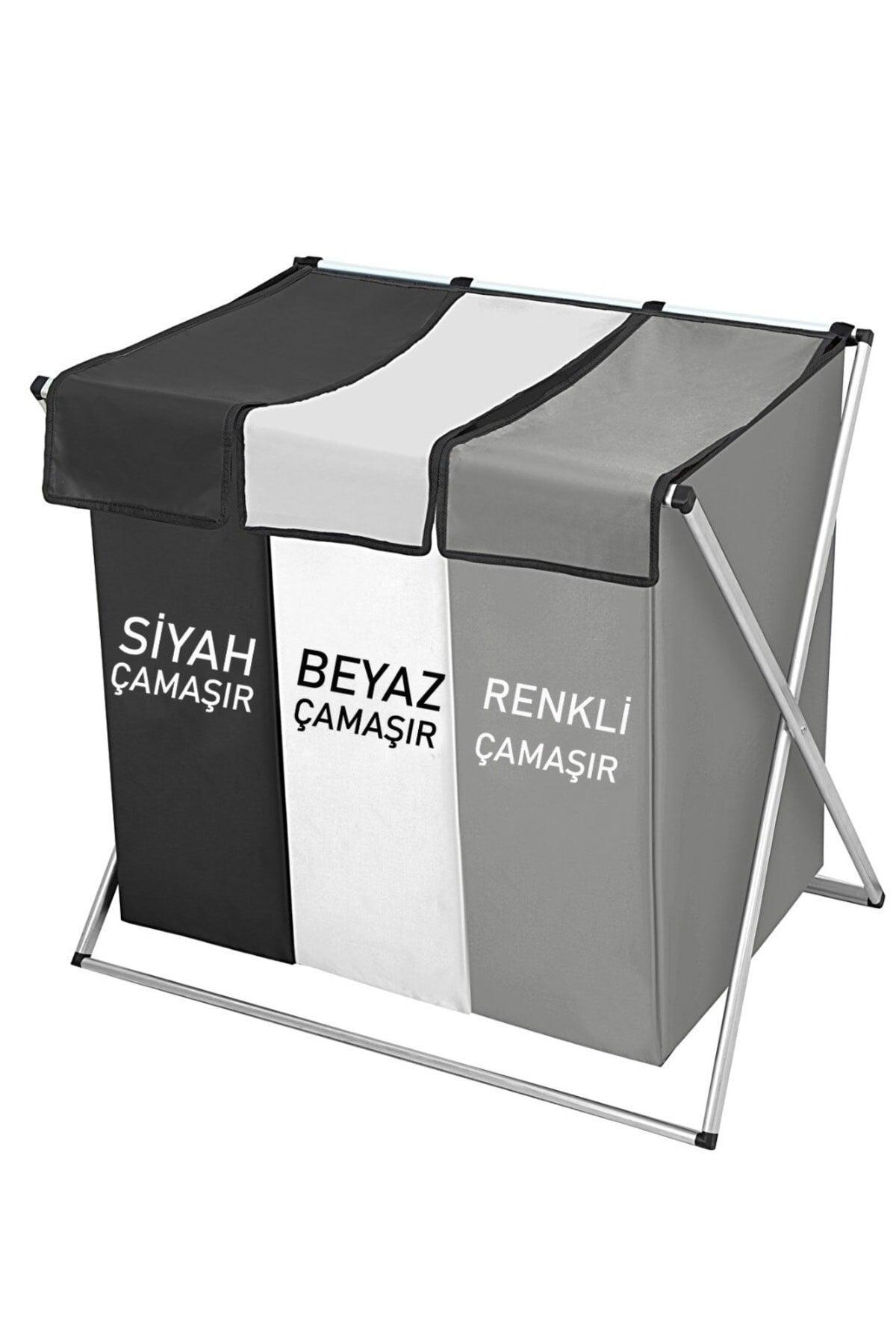Luiserie à 3 compartiments et panier sale, noir, tissu lavable en machine, 64x42x58 cm