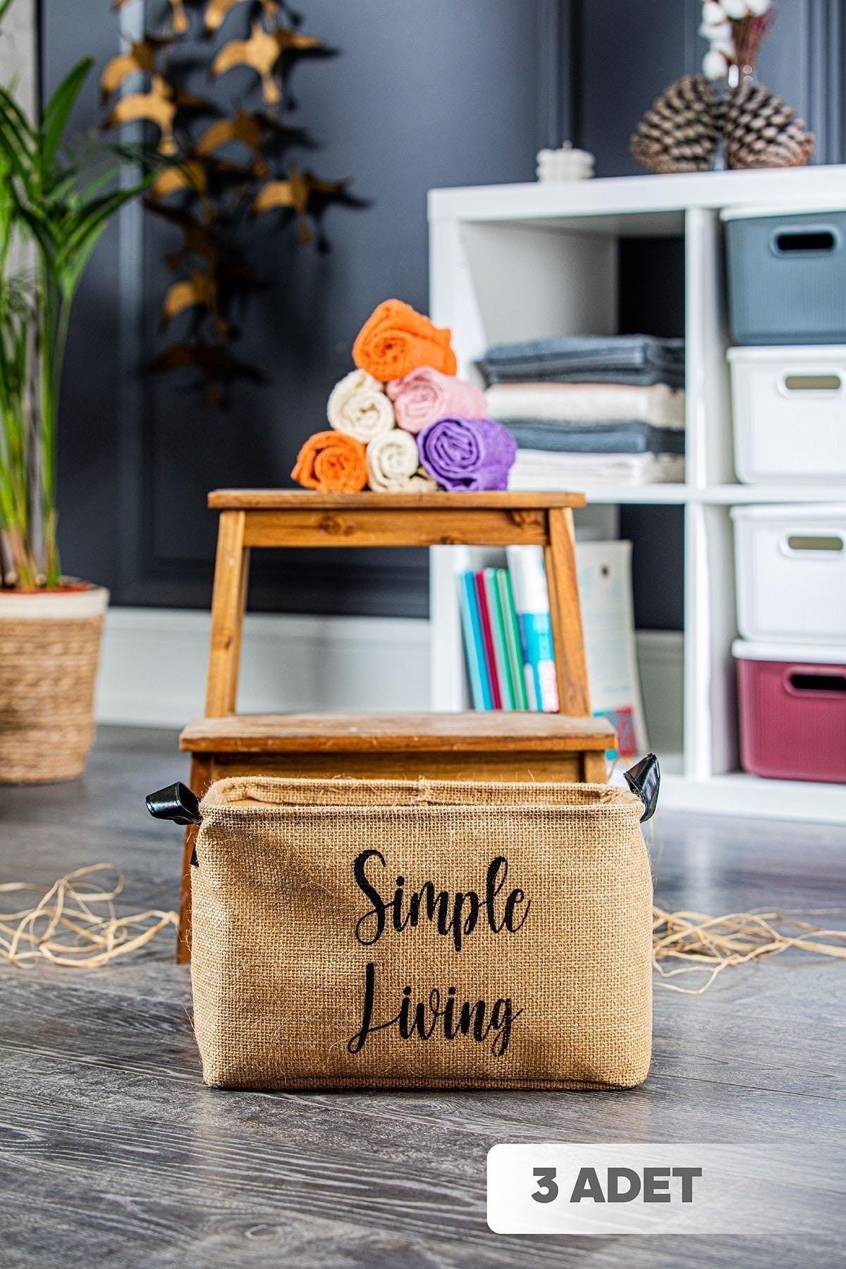 3 pièces Simple Living Mini Jute Panier rectangulaire 30x21x19 cm