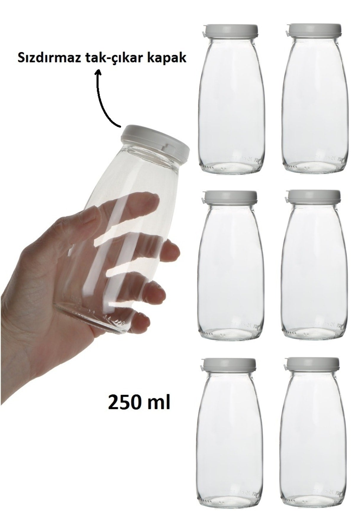 6 Pcs Transparent Glass Bottle Milk Buttermilk Lemonade Vinegar Beverage Bottle Multi-Purpose