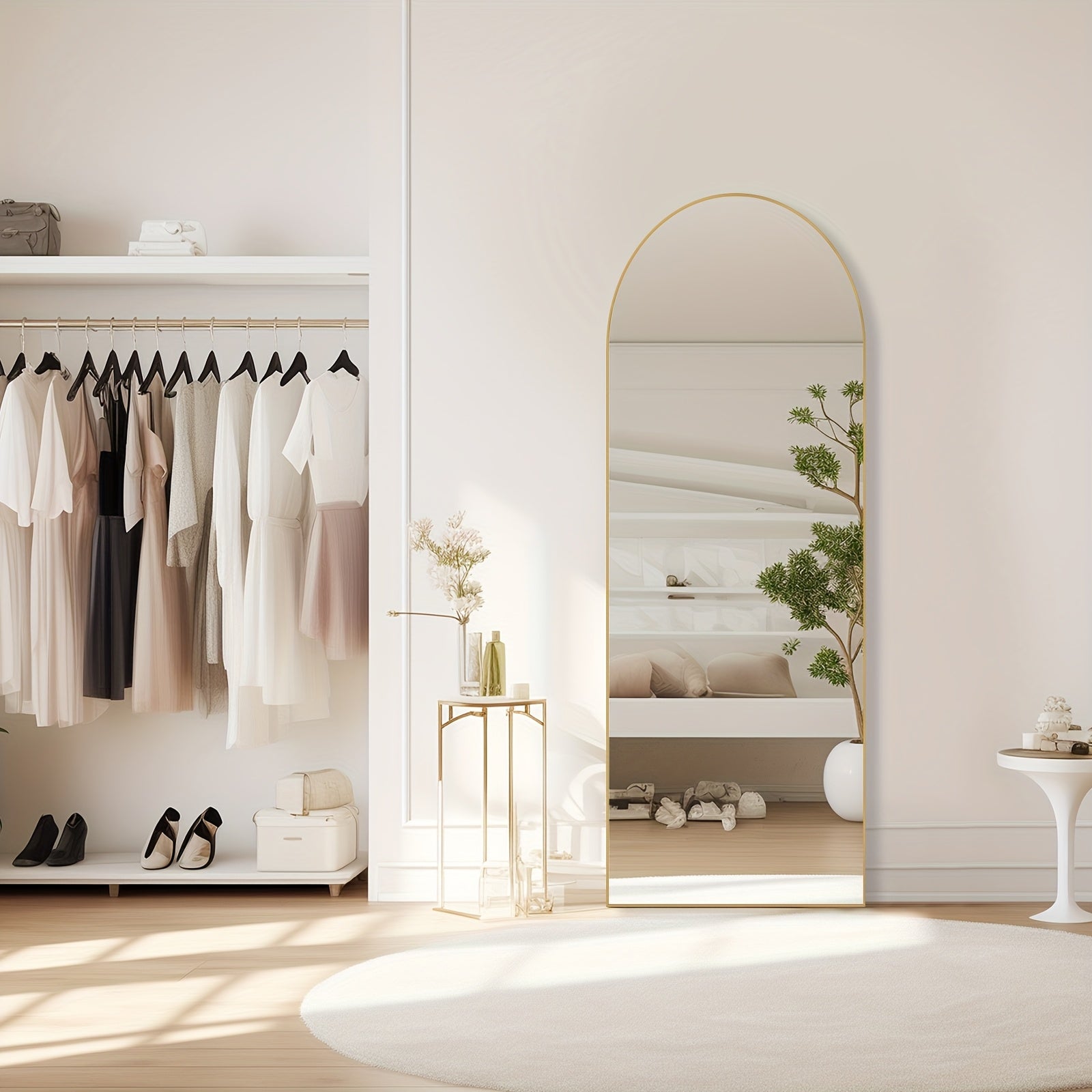 Arched Full Length 64" X 21"/ 59"x16"Mirror With Stand, Floor Mirror With Aluminum Alloy Frame For Bedroom, Standing Full Body Mirror With Shatter-Proof Nano Glass For Wall, Living Room, Cloakroom