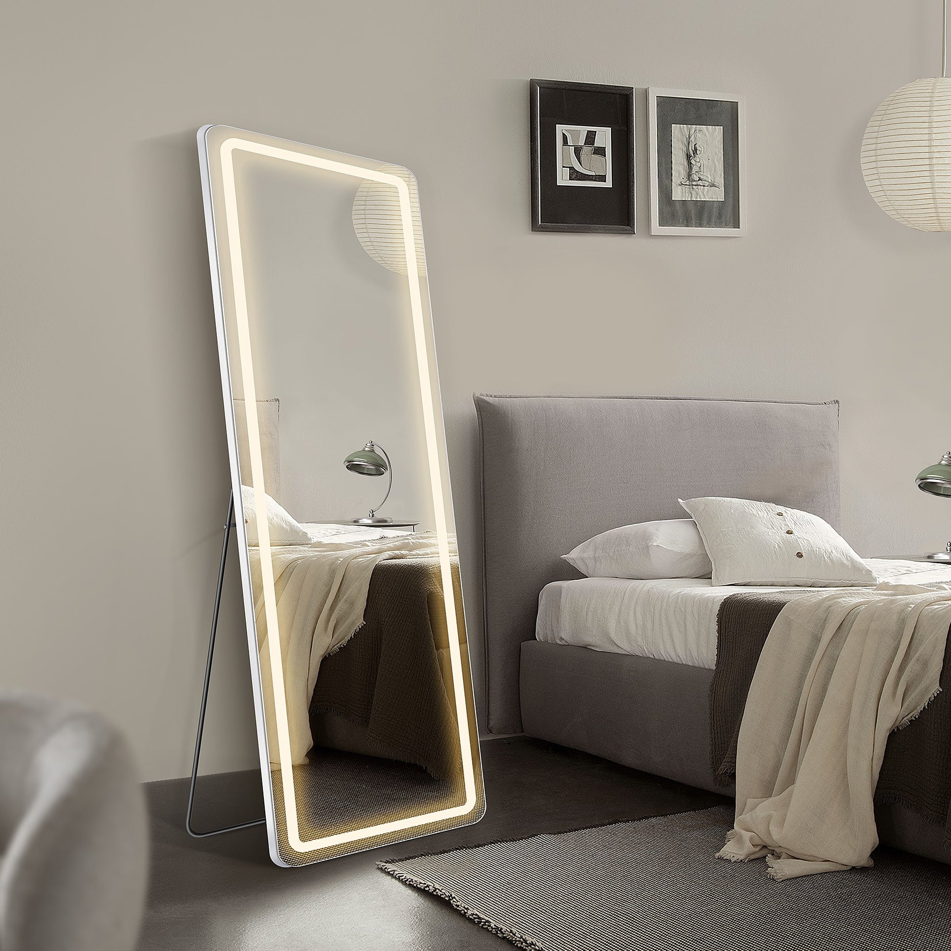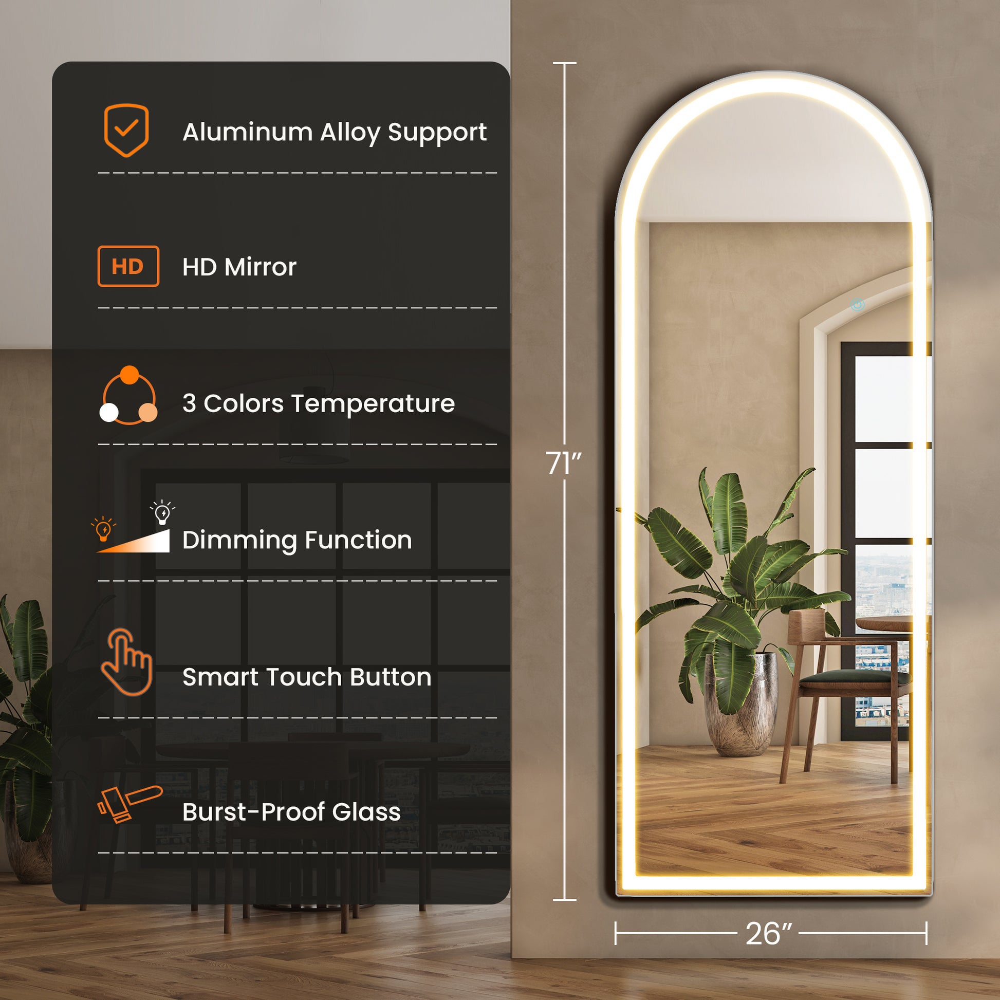 MCQ 26 x 71 In Arched/Rectangular LED Full Length Mirror, Full Body Floor Mirror Standing Hanging or Leaning Wall, Arch Wall Mirror with Stand Aluminum Alloy Thin Frame for Bedroom, Bathroom, Store