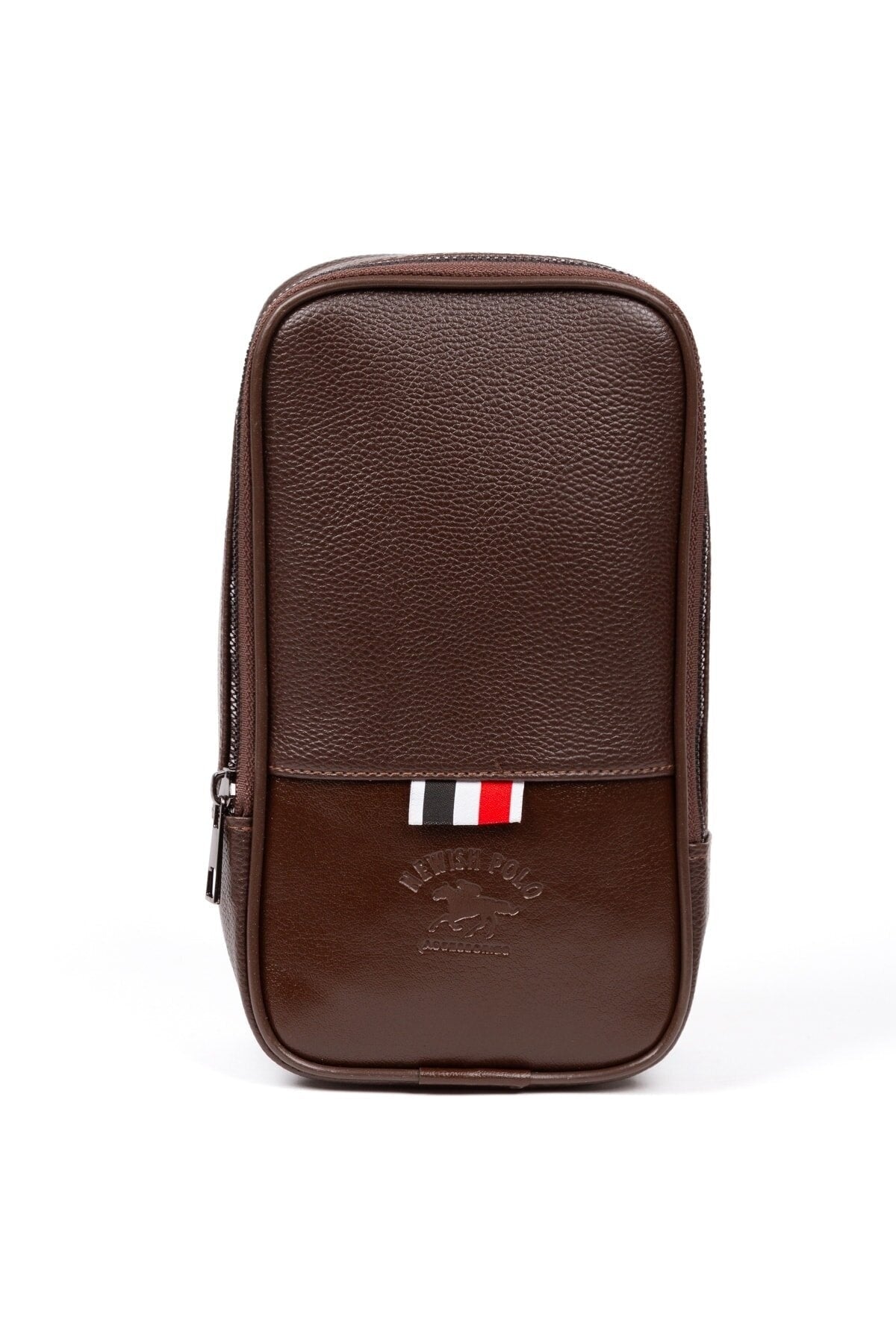 Adelina Men'S Vegan Leather Shaved Travel Cosmetic Portfolio Hand Bag Dark Brown