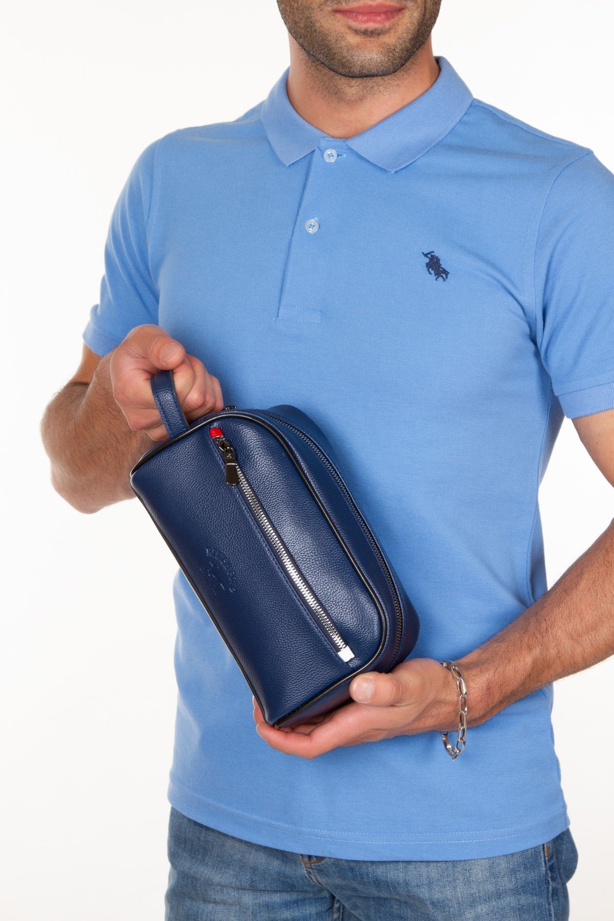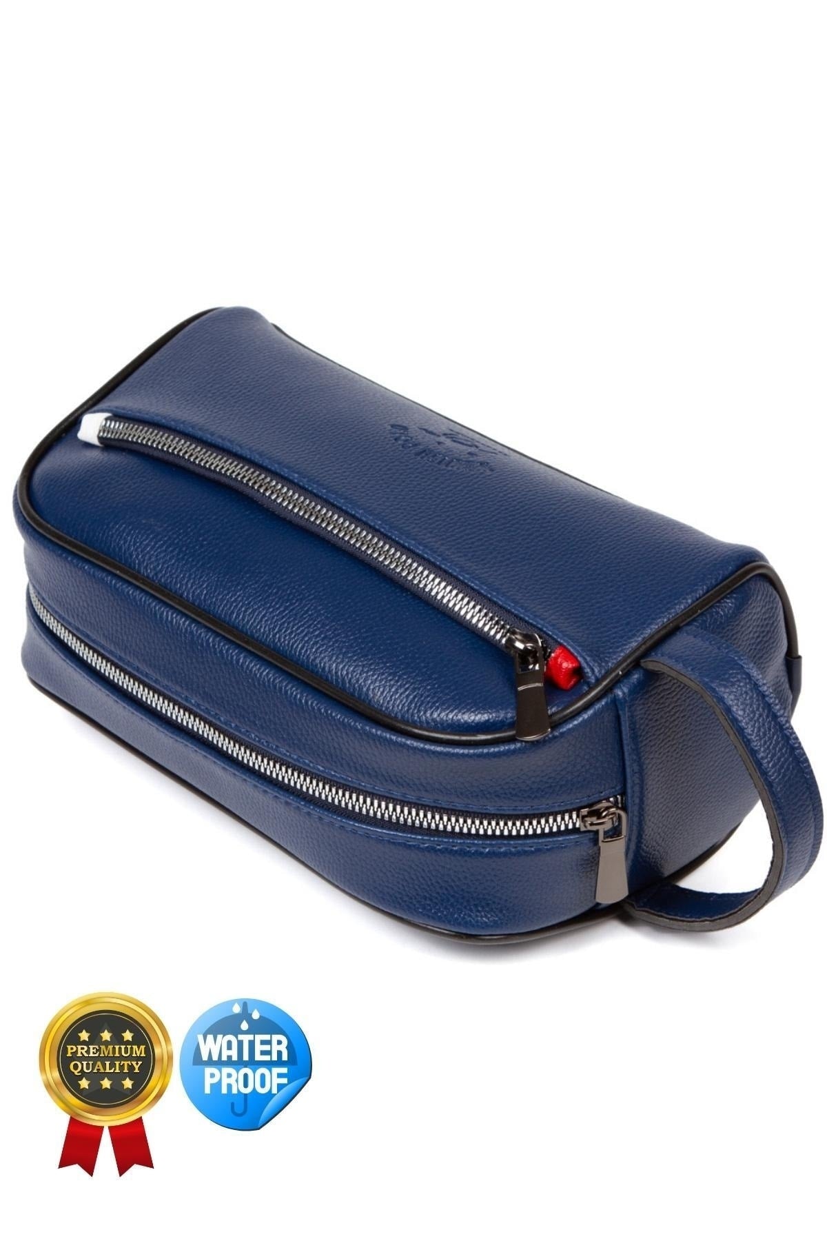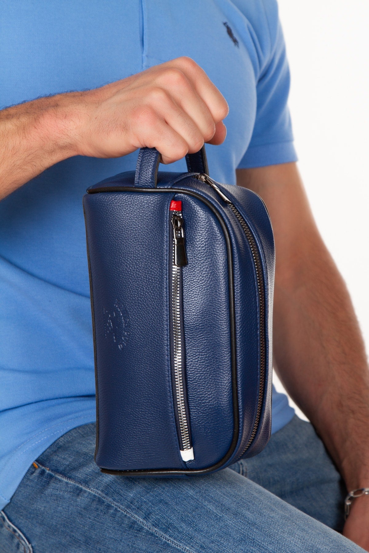 Adelina Navy Blue Leather Portfolio Clutch Bag Travel Shaving Cosmetic Clutch Bag
